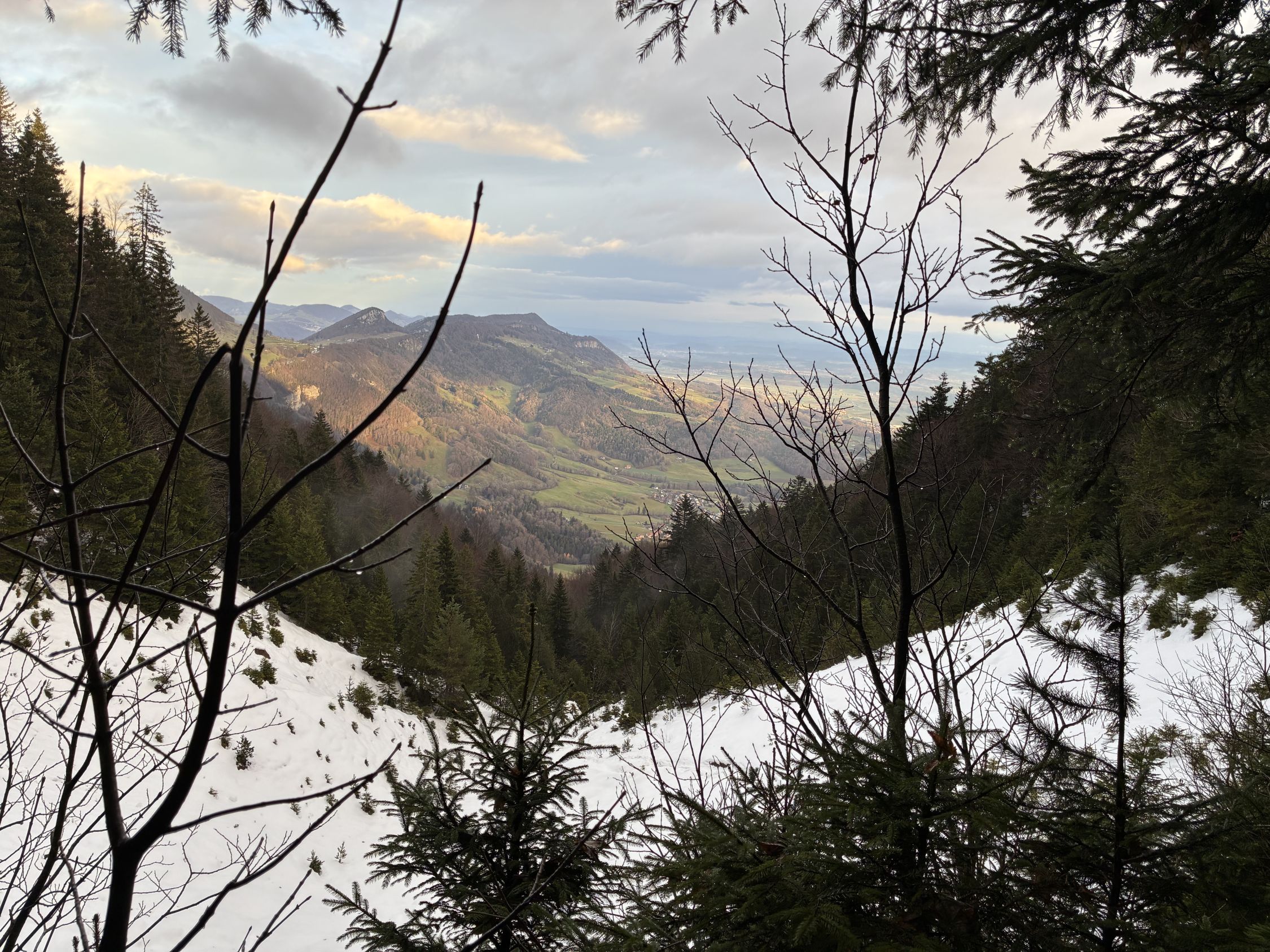 Nieselregen bei 5°C am Start beim Parkplatz Ruine Balmflue. Nach 30 min legte sich der Regen, es blieb aber neblig mit selten mehr als 100 m Sicht. Gelände entsprechend rutschig, dennoch spannend. Bis zum Röti niemandem begegnet, selbst die Tiere blieben bei dem Wetter in ihren Verstecken, Kaum ausgeprägte Spur zum Röti, ab 1150 m durchgehend nasser, gut gesetzter Schnee. Zügiger Wind (bis 60 km/h) am Röti. Erst im Abstieg ab Nesselbodenröti einige wenige Sonnenstrahlen. Sehr glitschiger Abstieg via Zwüschenberg.
