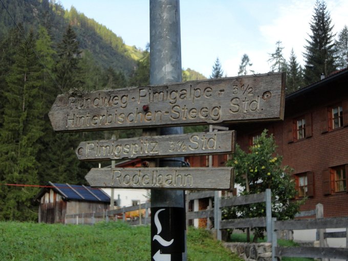 Sehr einsam, außer den Alphirten der Hinterbischenalpe ist uns auf der ganzen Tour niemand begegnet. Sowohl vom Pimig (Steig) als auch vom Schwarzen Kranz (Skiroute) kann in´s Almajurtal abgestiegen werden; die Überschreitung kann daher auch variabel gekürzt werden. Letzter Bus von Kaisers nach Steeg um 18.00 h.