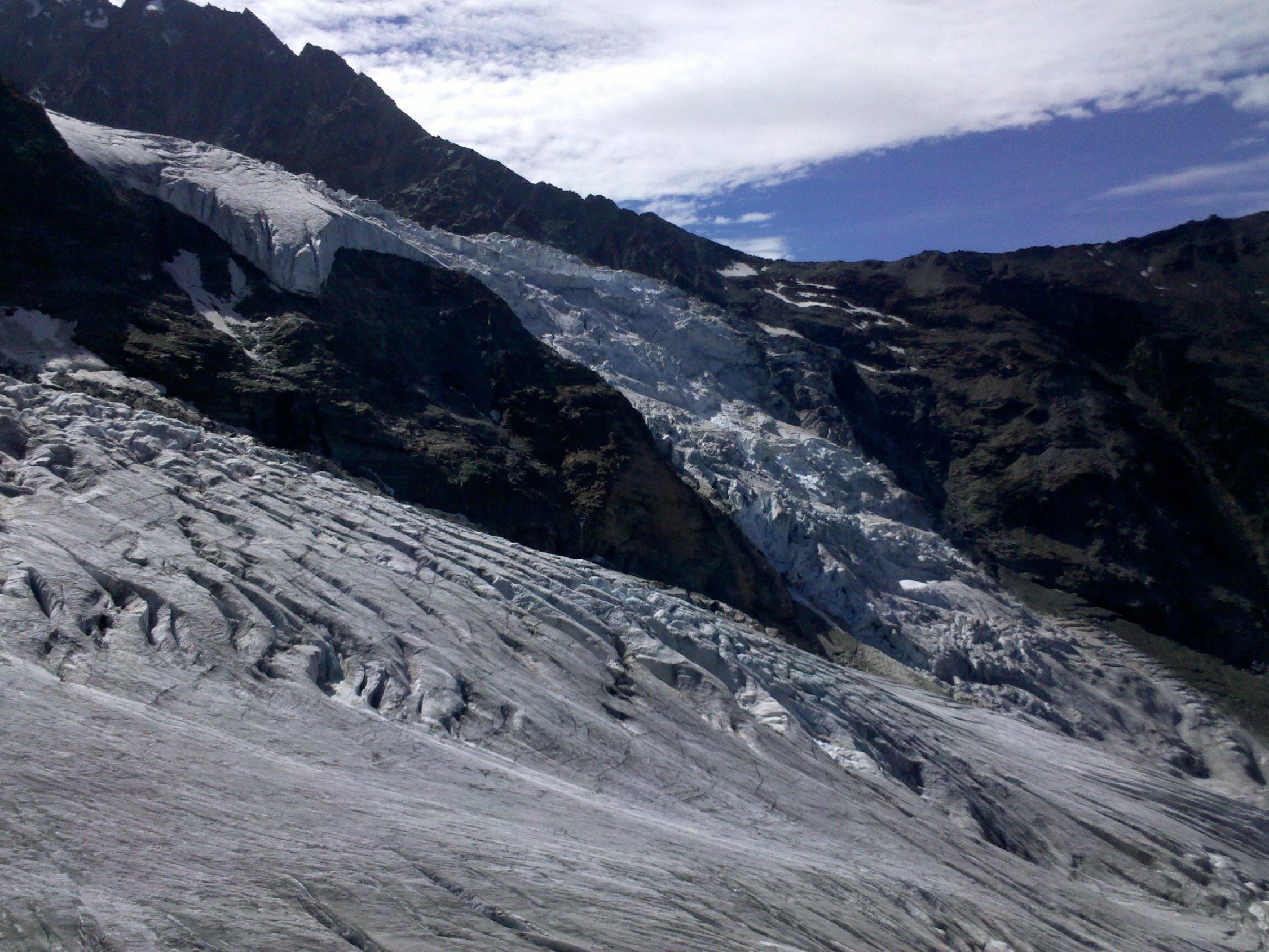 Im Abstieg ein paar Spalten, aber links umgehbar an den Felsen.