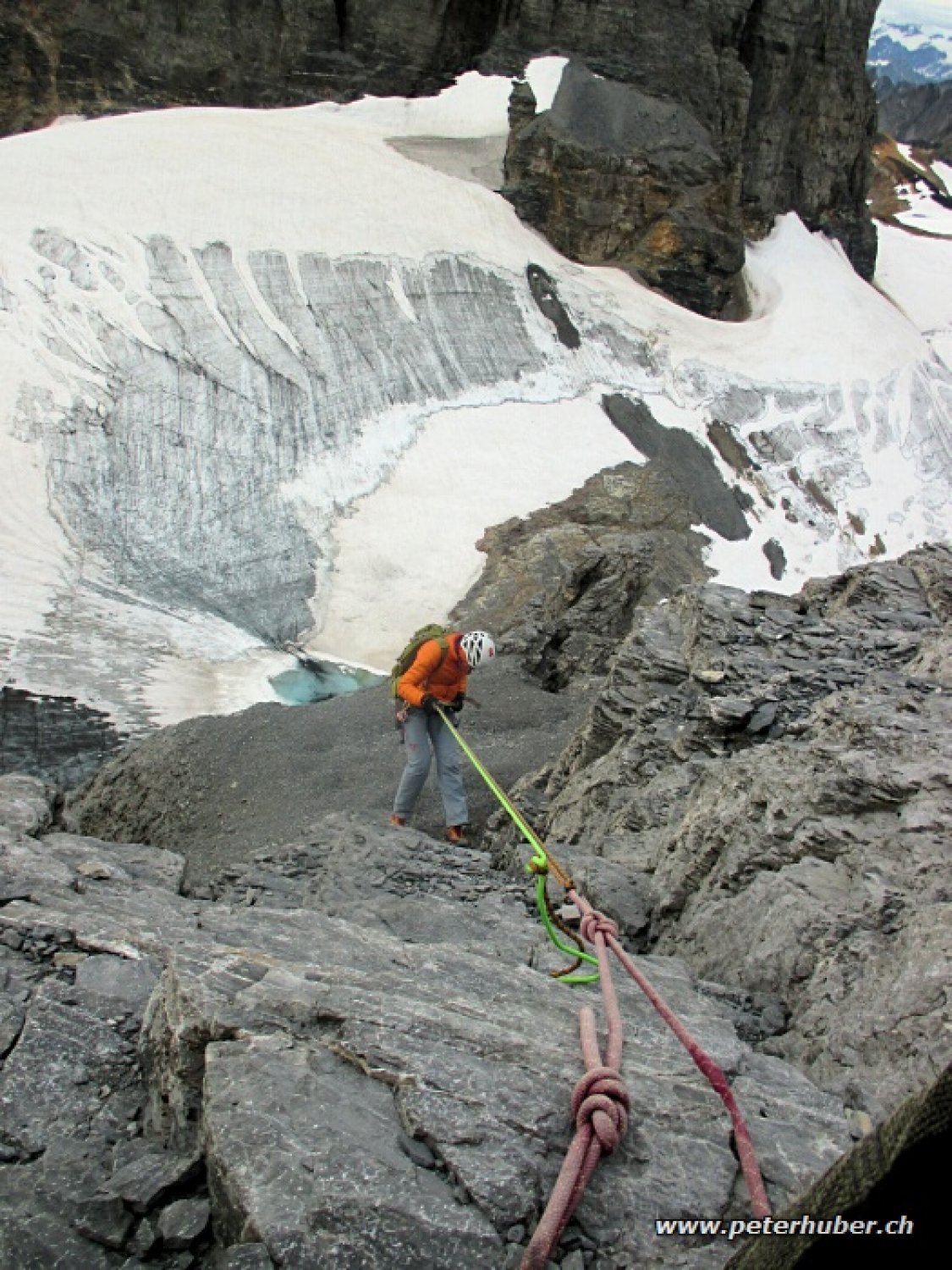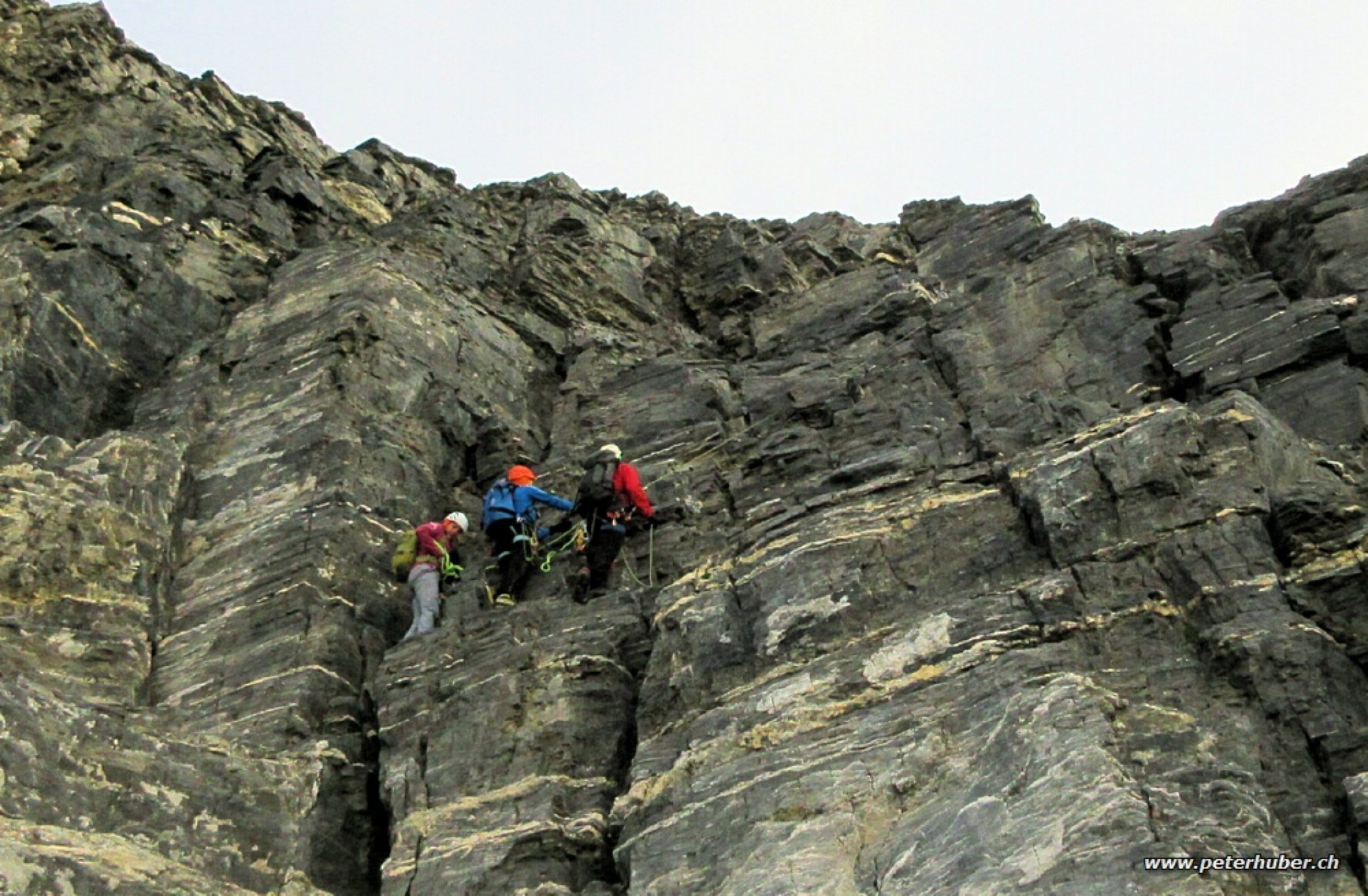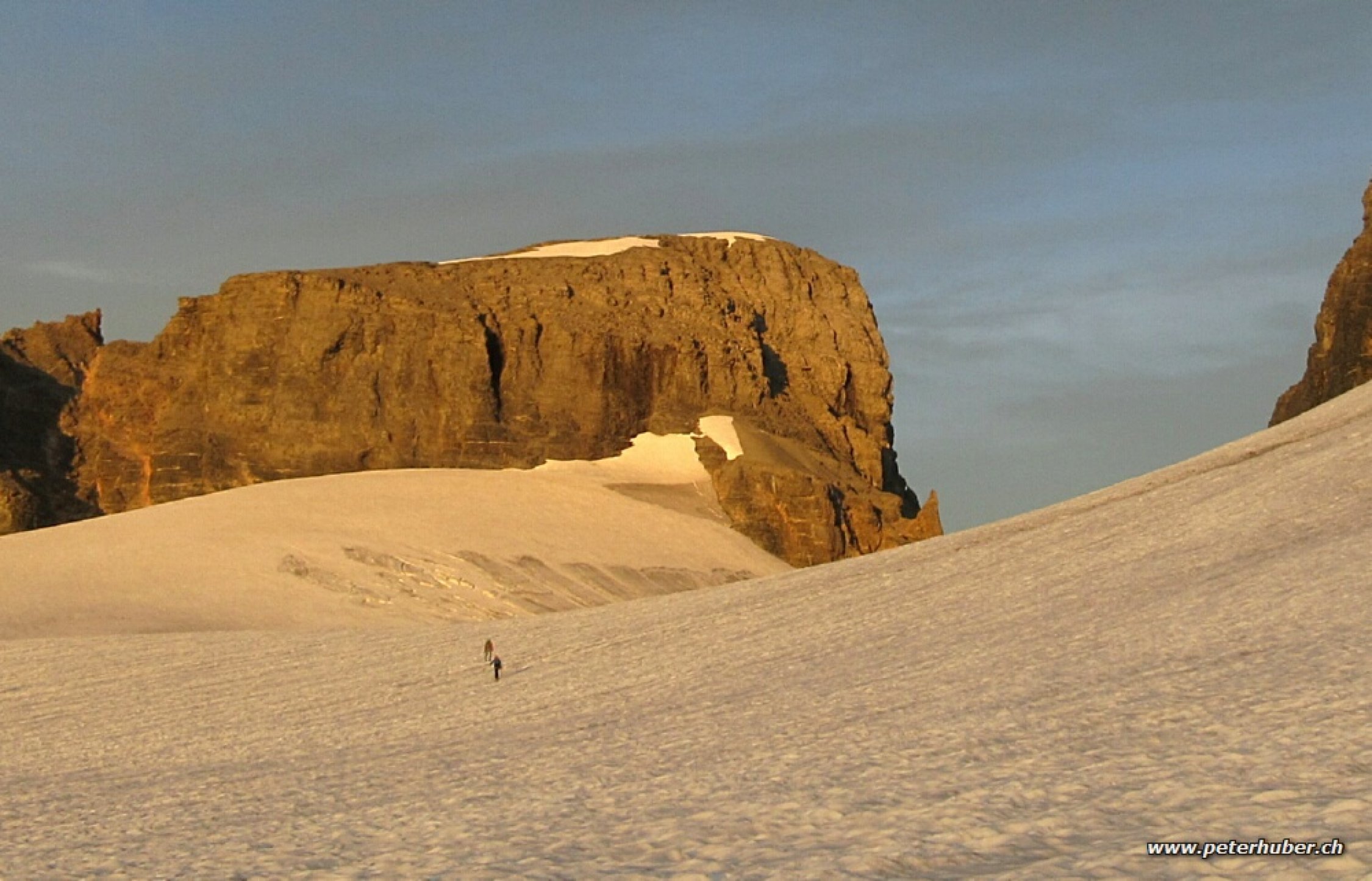 Hohe Wolken, teilweise Sonne. Zwischendurch kalter Wind, dann auch wieder windstill. Gletscher ist schneebedeckt und gut zu gehen. Keine Spalten gesehen. Genügende Abstand von den Felsen lassen - Steinschlag. Zum Klettern in den Felsen kalt. Vorsicht, wenn Kletterer unterhalb sind - sehr viele lose Steine. Kletterpassage problemlos. Das Firnfeld vor dem Gipfel kann schneefrei umgangen werden.