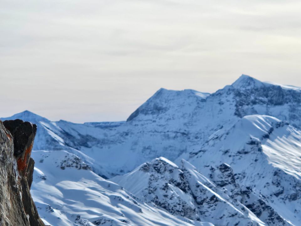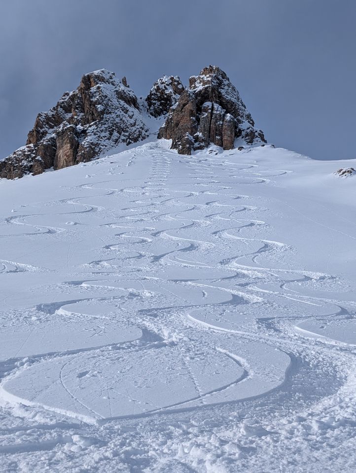 10cm Neuschnee im oberen Teil. Im Schatten trotz angenehmen Temperaturen noch pulvrig. In Sonnenflanken schwerer, feuchter Schnee. In Kammnähe windgepresst. Bei der Abfahrt zur Alp fast durchgehend gut drehbarer Pulver. Es hat ausreichend Schnee. Nur wenig Bodenkontakt. Aufstieg in Couli Lockerschnee mit etwas Felskontakt. Ketten weitgehend frei. Nach dem Abstecher zum Spitzmeilen lohnte sich der Aufstieg zum Wissmeilen mit direkter Abfahrt im Nordosthang.