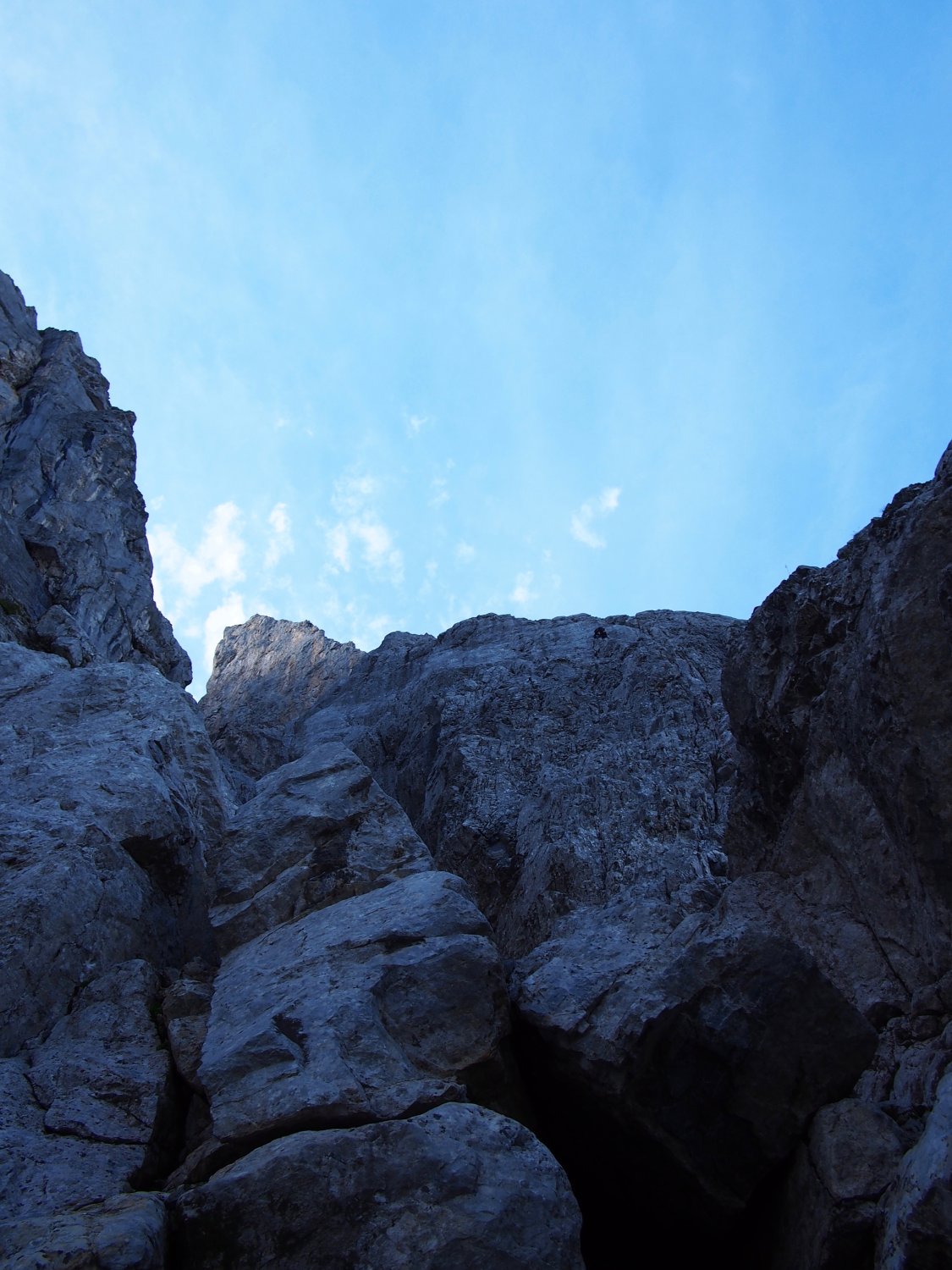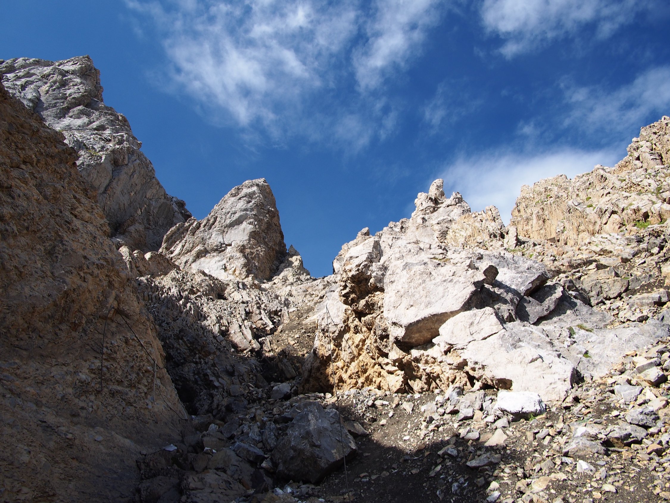 In der Westwand auch gelegentlich Steinschlag beobachtet, dieser kam vom Schotterfeld direkt unter dem Gipfel.
