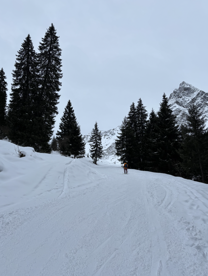 Frau Holle präsentiert uns derzeit nur eine sehr reduzierte Speisekarte. Überall wo das Gelände mit Blockwerk oder Büschen durchsetzt ist, kann eine Abfahrt nicht empfohlen werden. Die Sperre der Schiroute 2 macht es allerdings derzeit für Schitourengeher attraktiv diese für den Aufstieg über den Gandasee zu nutzen. Die letzten 100 Hm auf das Joch waren zum Spuren recht steil und anstrengend. Abfahrt zunächst in diffusem Licht eher zaghaft, um zwischendurch Steinkontakt zu vermeiden. Ab den Speicherseen dann den gut eingeschneiten Fussweg zum Skigebiet genutzt und die offiziel gesperrte Schitroute zurück nach Vergalda fast schon richtig genossen. Oben war Pulver, zwischendurch auch mal etwas hart bzw. der Pulverschnee recht feutcht. Insgesamt aber überraschend gut und kein Steinkontakt :-)