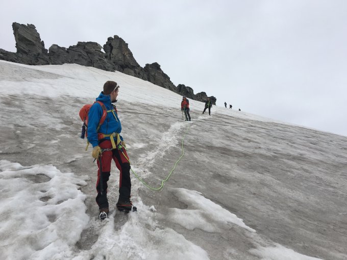 Den WSW Grat ist vom Passo del Laghetto her blau gepunktet markiert und in gutem Zustand und fast wie ein Klettersteig durchgesichert. Den oberen Teil des Grates obrhalb 3300m ist dann nicht markiert (man könnte über Gletscher zur Normalroute) aufgrund Firnschwund, respektive dem wenigen Schnee und Blankeisstellen etwas anders wie im Routenbeschrieb. Man kommt nördlich eines grossen und von weitem sichtbaren Gendarmen auf den Grat. Der erste Gratabschnitt kann nördlich, der grosse Gendarm kann südseitig leicht exponiert auf Platten umgangen werden. Dannach leichter Felsgrat Aufstieg zum Gipfel.