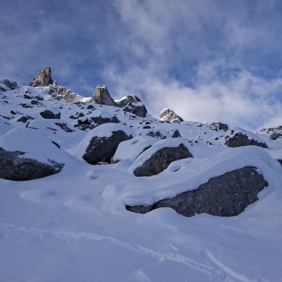 Da der erste Schnee von vor 2 Wochen sich gut setzen konnte und somit ein guter Untergrund da war wurde es doch eine schöne Skitour.