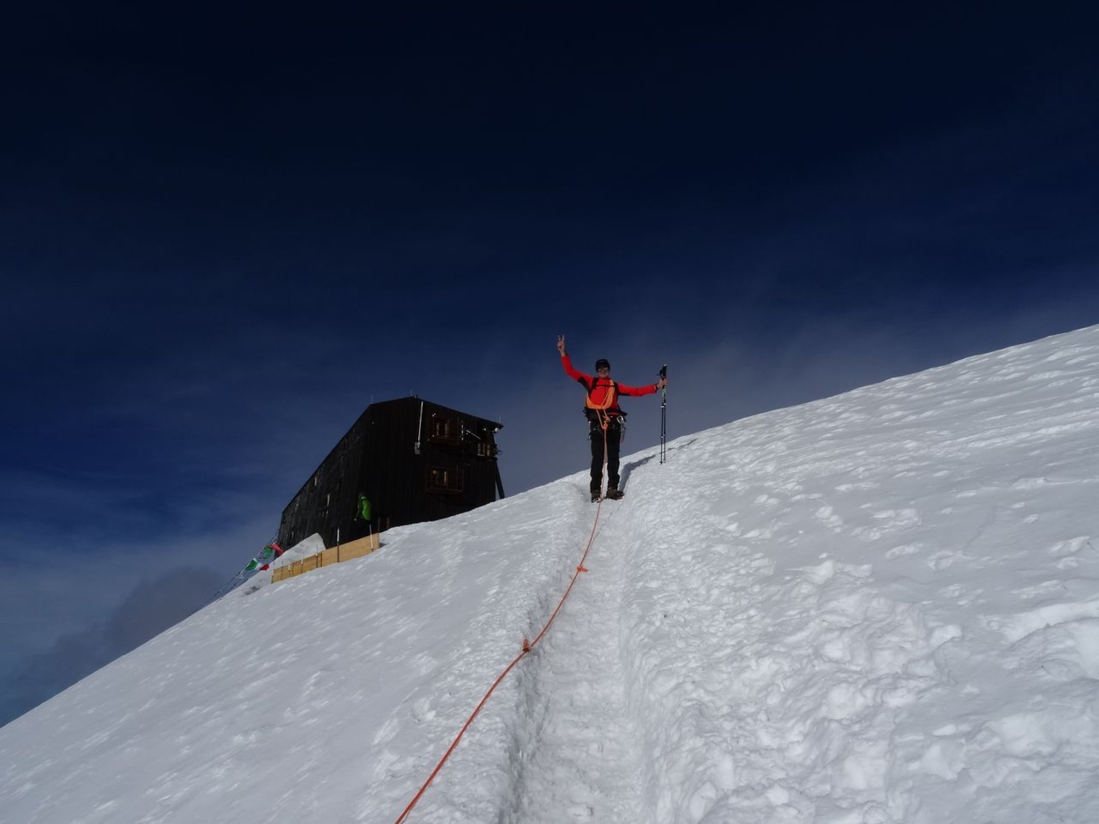 Wir starteten unsere Tour am DO 01.09.2016 nach der Auffahrt mit dem Matterhorn-Express auf dem Kl. Matterhorn. Das Ziel war die Quintino Sella-Hütte. Dabei haben wir die Zwillinge Pollux bestiegen und Castor überschritten. Blankeisstellen auf den Castor erforderten Umsicht. Ansonsten beste Bedingungen.