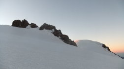 Tourenbeginn um 05:30 Uhr bei 2°C. Ideale Bedingungen. Wolkenlos, kalter Wind in oberen Bereichen, so daß der Firn nicht gleich auftaute. Gefrorener Firn am Morgen. Am Nachmittag oberflächlich aufgesulzter Firn auf den Gletschern, so daß man es im Abstieg richtig „Platzen“ lassen konnte, oberhalb der Spaltenbereiche. Die Gletscherspalten im unteren Breich von Zusammenkunft des Lys-Gletschers mit dem Garstelet-Gletscher waren vereinzelt noch verschneit und hielten als Brücken.