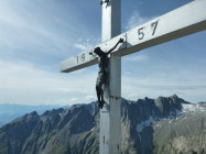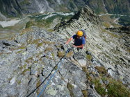 Wir sind über den Ostgrat aufs Wiwannihorn. Von Fuxtritt(1851 m) zum Kaffe in die Hütte (2471 m) und weiter bis zum Einstieg. Der Grat bietet, wie beschrieben, schöne Klettereien in alpinem Ambiente. Vom Ostgipfel weiter zum Hauptgipfel und Abstieg über den Westgrat. Zurück zur Hütte, diesmal ein kühler Drink, und weiter zum Fuxtritt. Eine schöne lange Tour.