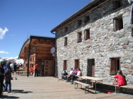 Die Capanne Gniefetti mit 176 Plätzen in Zimmern mit Etagenbetten und 4 Nachtlagern mit 15 Plätzen ist von 18. Juni bis 14. September bewartet. Ein kleiner Winterraum bleibt außerhalb der Bewirtung geöffnet. Die Versorgung ist logistisch gut. Frühstück gibt es ab 04:30 Uhr, Abendessen ab 19:00. ÜN mit Halbpension kostet € 70,00 (Stand 2016). Nadelöhr dort ist bei der Kapazität jedoch die sanitäre Versorgung (wenig Plätze und Wassermangel).