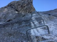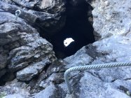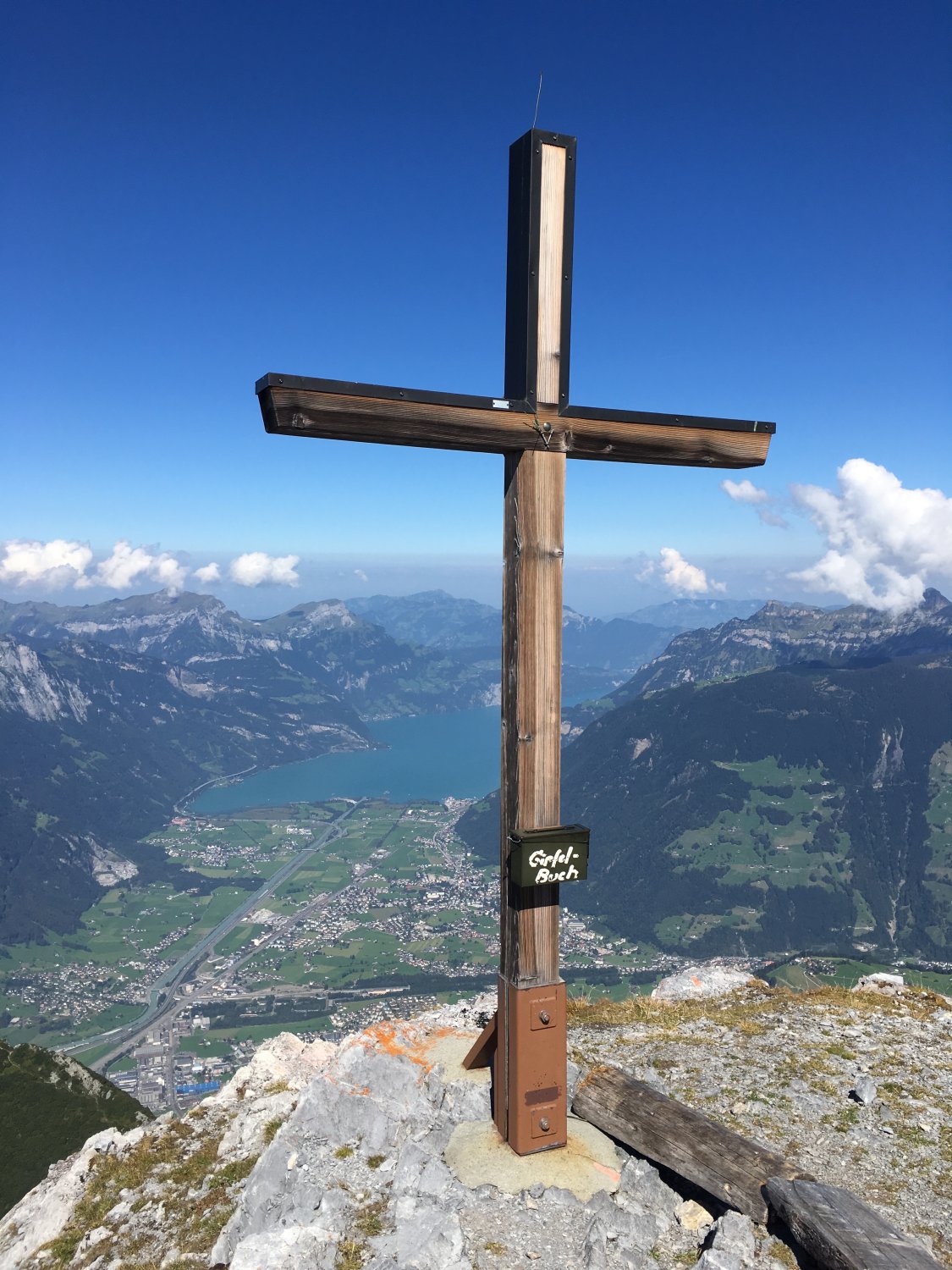 Der Klettersteig selbst ist gut gesichert. Schwierigkeit K4. Immer leicht abdrängend. Der Höhepunkt ist natürlich das Bälmeten Tor. Nach dem Ausstieg unschwierig weiter auf dem blau-weissen Weg zum Gipfel. Von hier wunderbare Sicht ins Tal.