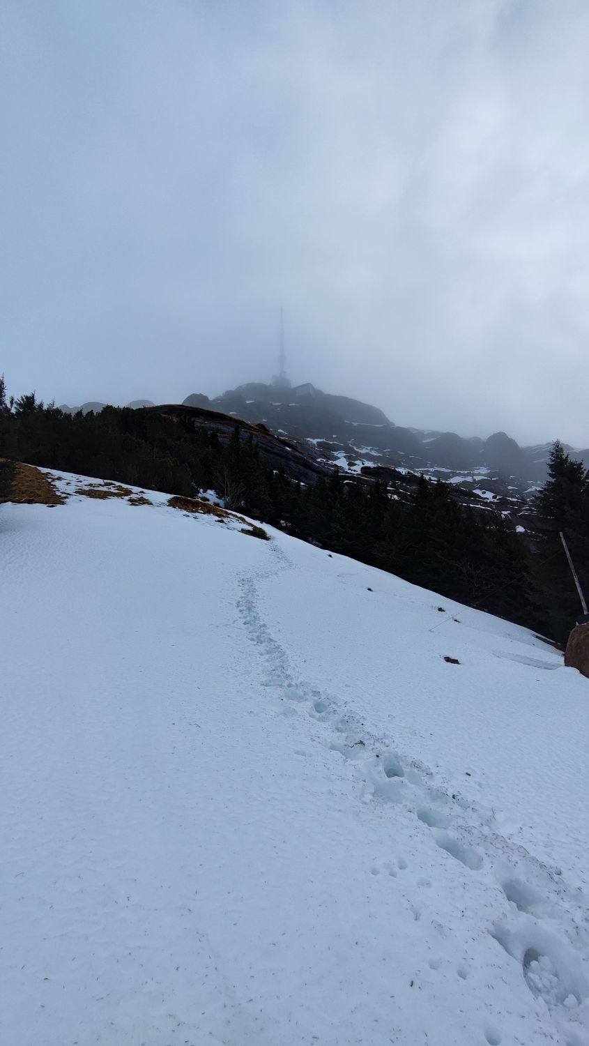 Ab Küssnacht gestartet, oberhalb Seebodenalp Schneekontakt. Desto höher desto mehr. Weg mehr Bach als Weg. Aber gute Spur bis zur Antenne.