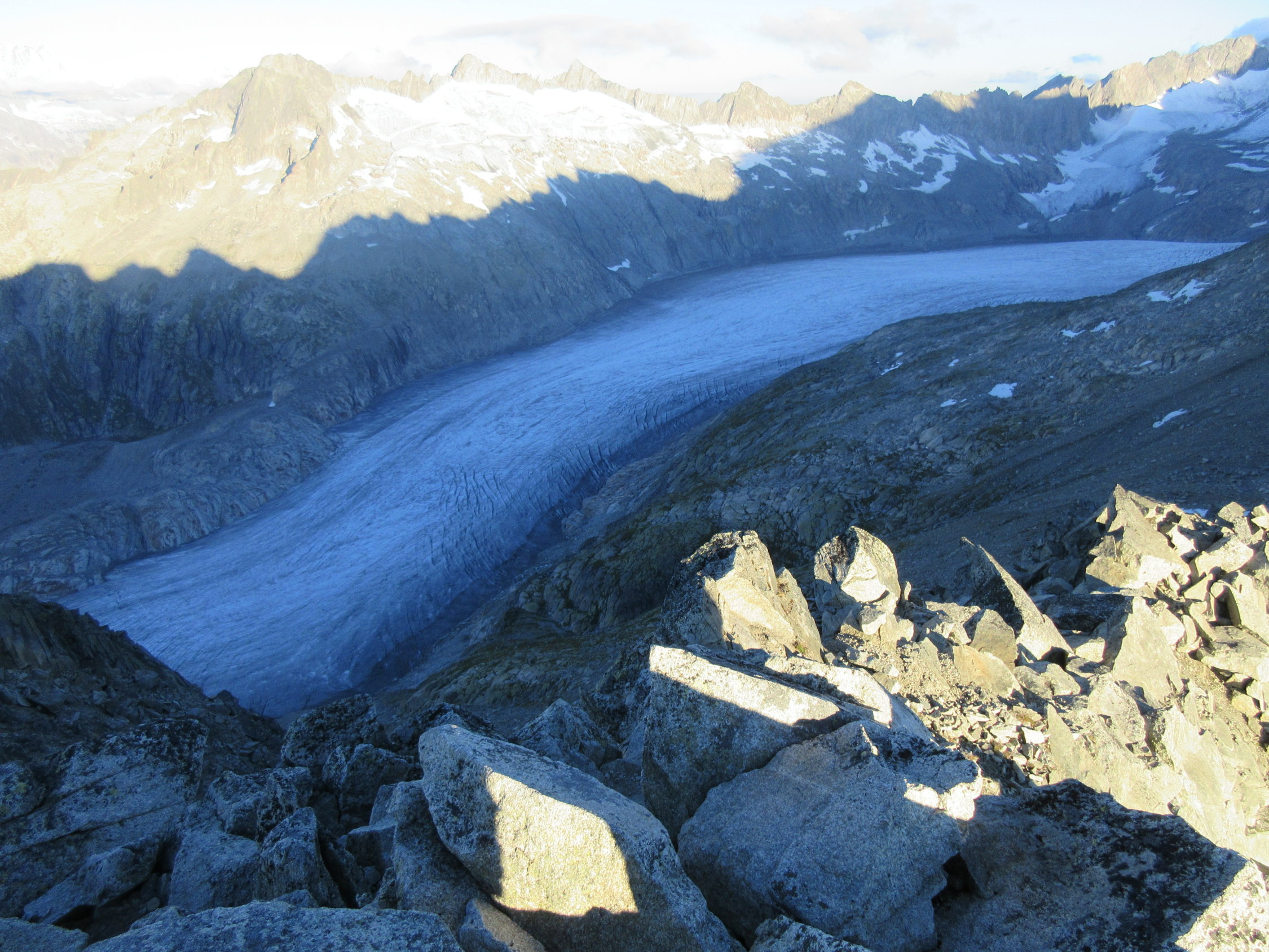 Kurz vor 6 Uhr morgens mit Stirnlampenlicht gestartet, richtigen Weg jedoch erst weit oberhalb des Furkastocks (Bergstation der Militärseilbahn) gefunden.