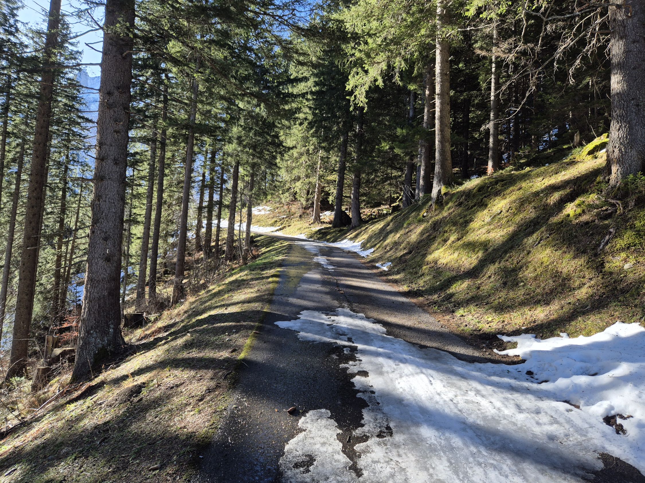 Verhältnisse wie im April. Strasse unten mit ca. 100m Tragestelle, wird die Tage mehr. Bis auf 2400m vom Regen geprägt, harte Kruste. Oben wechselnd hart und etwas Triebschnee. In der Abfahrt oben hart, mitte und unten Sulzig. Oberhalb der Skihütte schon um 11 bis auf den Boden durchgesunken (noch ca. 20cm Schnee). Ab 2000m viele Nassschneerutsche in allen Expositionen.
