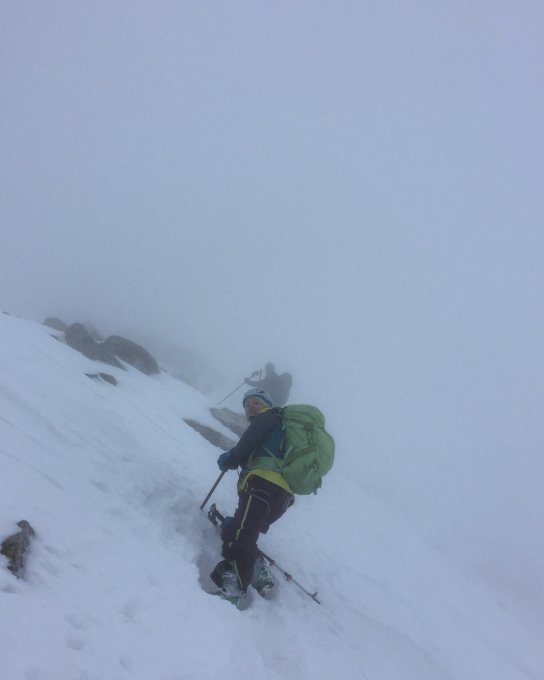 Eigentlich war die Überschreitung zum Gross Muttenhorn geplant. Aufgrund schlechten Wetters und Sicht von etwa 5m sind wir im White out auf den Gipfel vom Leckhorn gestapft und entlang der Aufstiegsspuren via Rotondohütte abgefahren. Ab Rotondohütte Sich wieder mehrere hundert Meter, Schnee besser als erwartet. Am Gipfelbereich etwa 200m Deckel.