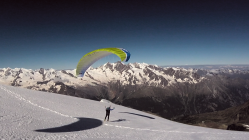 PErfekter Aufwind zwischen 8:30-9Uhr. Sind kurz nach 9 mit dem Gleitschirm vom Gipfel geflogen. Die Schlepperei hat sich gelohnt.