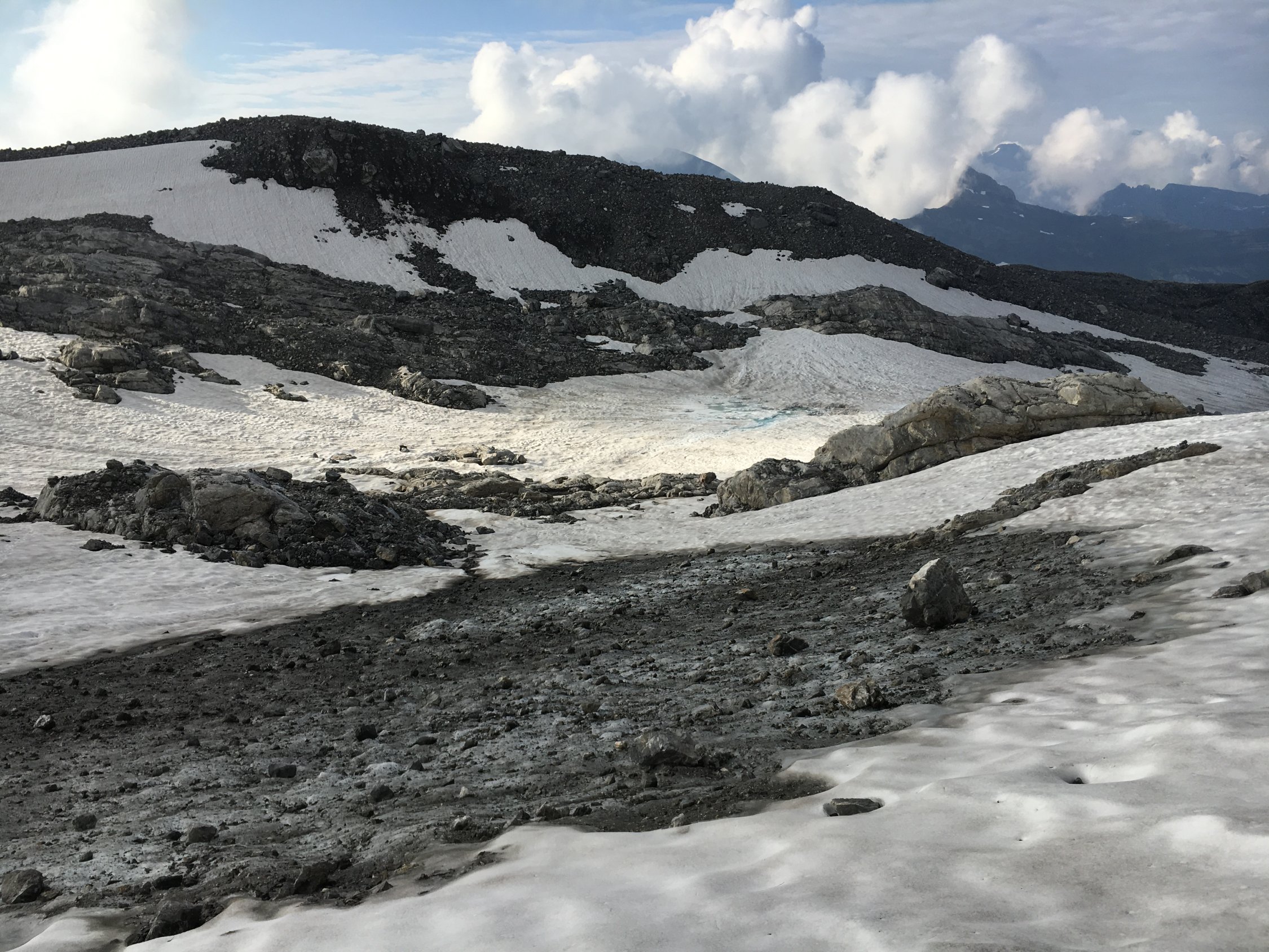 Zügig übequerten wir den Gletscher, der mit einer angenehmen Firnschicht bedeckt ist und auch ohne Steigeisen problemlos begangen werden konnte.