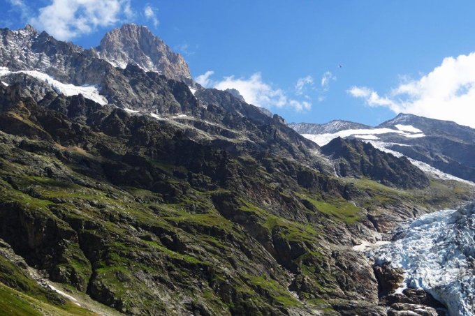 Harte Firnauflage auf dem Gletscher und der Bergschrund konnte problemlos überschritten werden dank dem Neuschnee vom 4./5.9.2016 - grössere Schneerutsche hatten den Schrund ziemlich aufgefüllt. Die Felskletterei danach zum Gipfel war perfekt da alles trocken. Im späteren Vormittag aufkommender, kühler SW-Wind mit Böen. Im Laufe des Nachmittages zunehmende Bewölkung und in der Höhe beobachteten wir sehr starken Wind. Erste Vorzeichen für den auf heute prognostizierten Wetterwechsel.