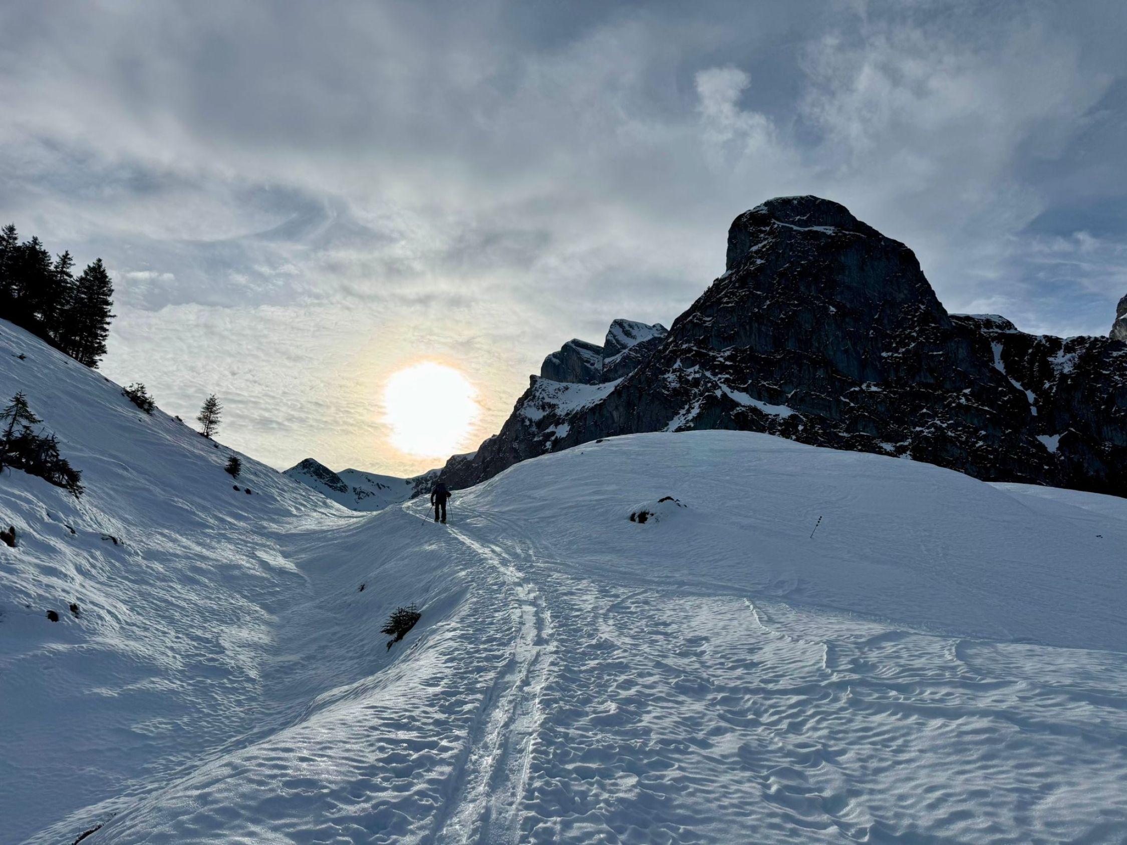 ein "gut", weil sich die Sonne nur selten zeigte; ansonsten, was Schneeschuhe betrifft könnte ich schon ein "ausgezeichnet" geben. Mit Skis unterwegs, würde ich ein "machbar" geben. Erstens ist viel zu wenig Schnee in der Gegend und der Schnee, den es gibt, ist unschöner Bruchharsch bzw. ab Mittag nass.