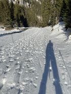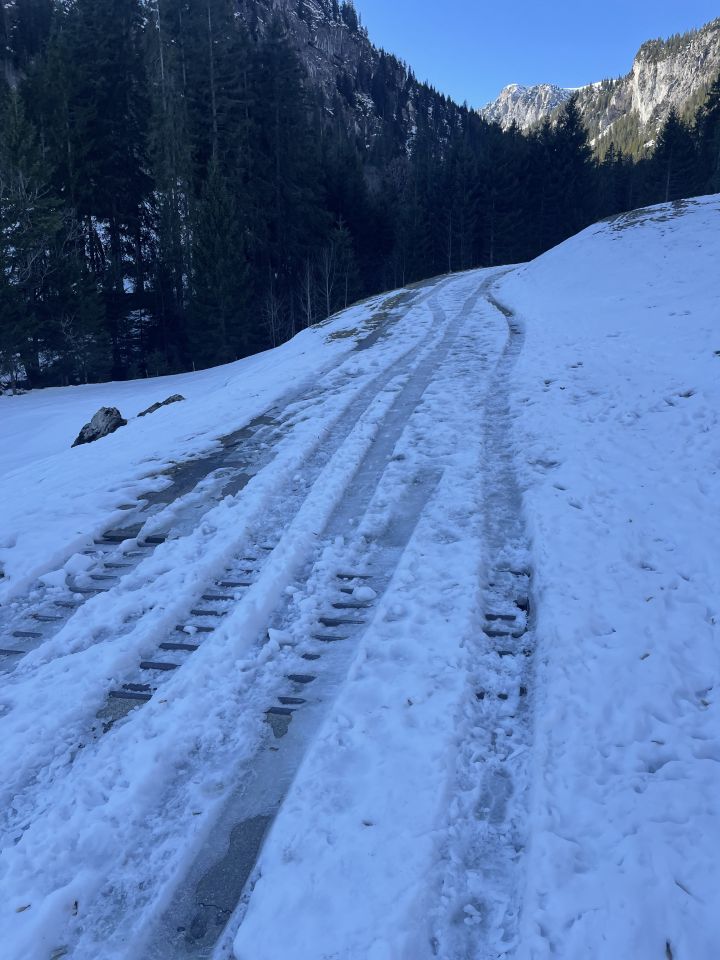 Dass es ganz unten noch ein Autofahrer versucht hat mit hochfahren, dazu schweigt des Sängers Höflichkeit. Zum Glück konnte man die gefrorenen Spuren umfahren.