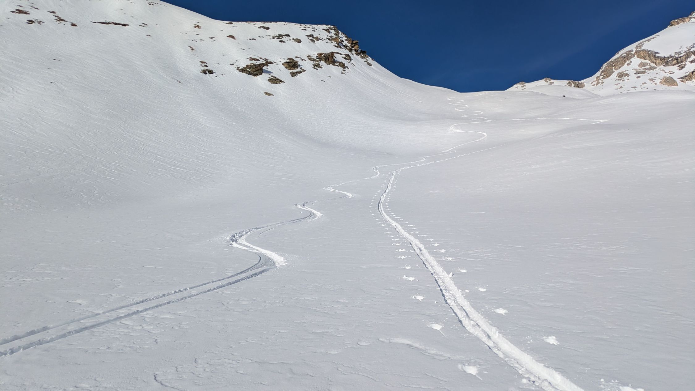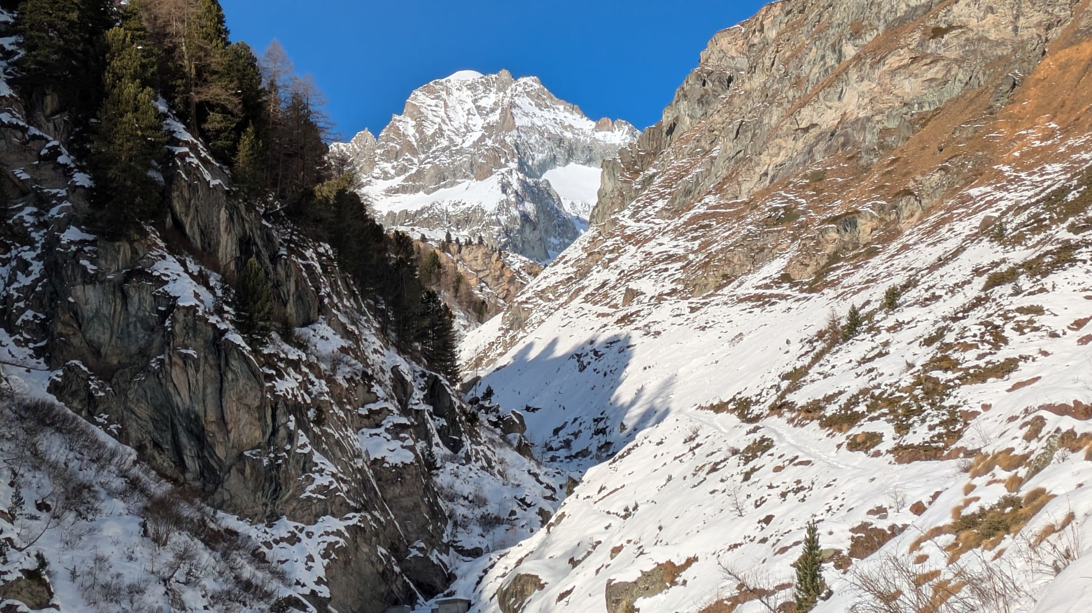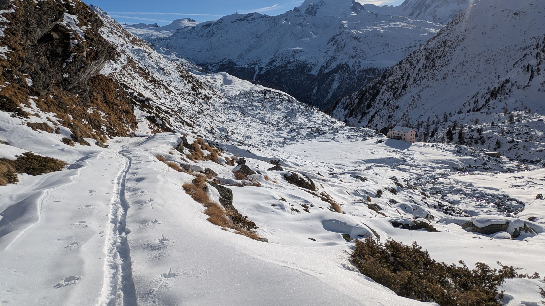 Die Skier konnte ich nach dem Restaurant Edelweiss anziehen. Nach Trift bis Trift-Chumme eher wenig Schnee. Von der Trift-Chumme hatte es 20 cm Pulverschnee.