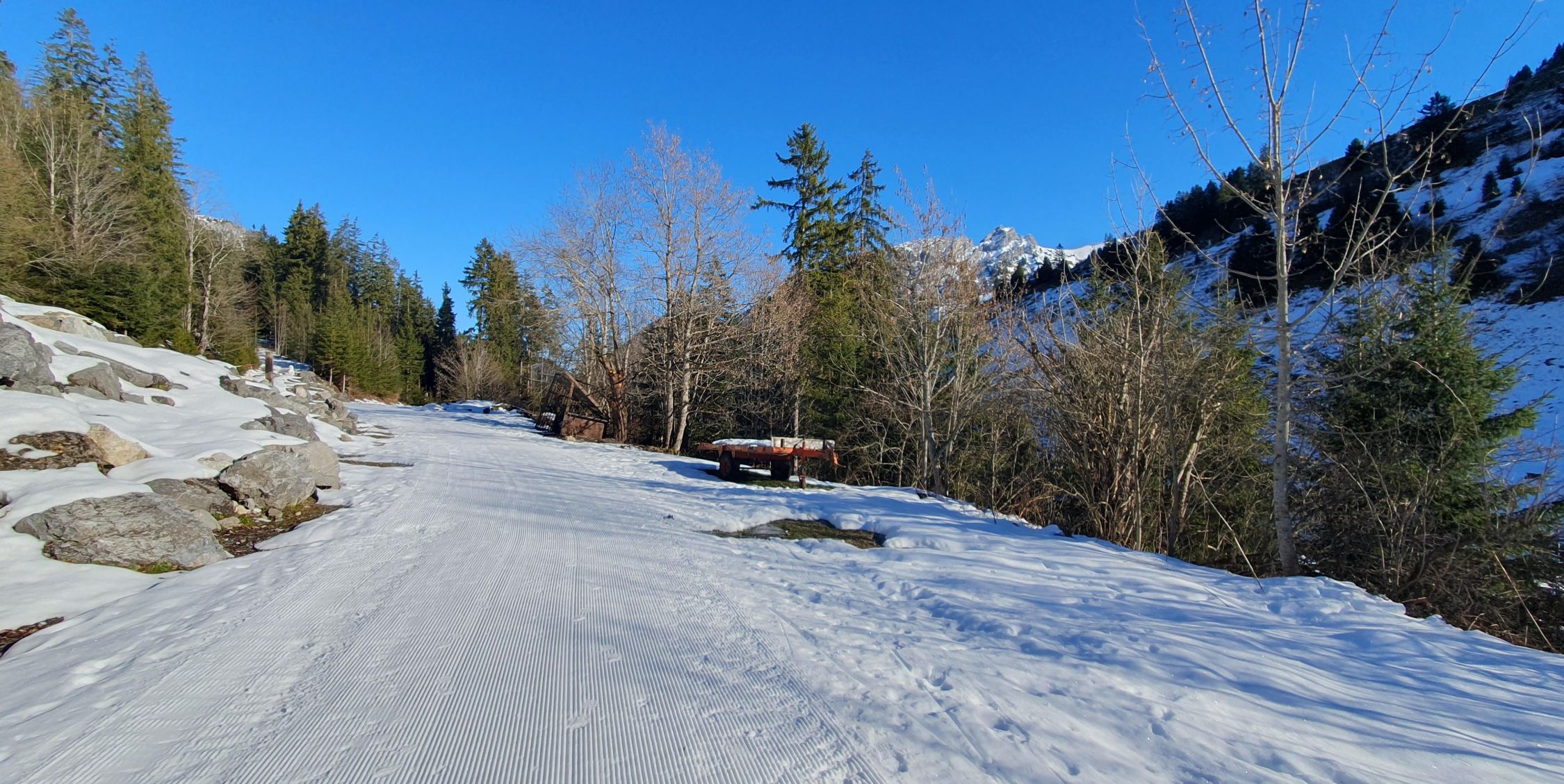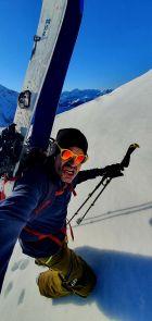 Splitboardern empfehle ich unbedingt die Steigeisen für die Querung der Rutsche einzupacken...