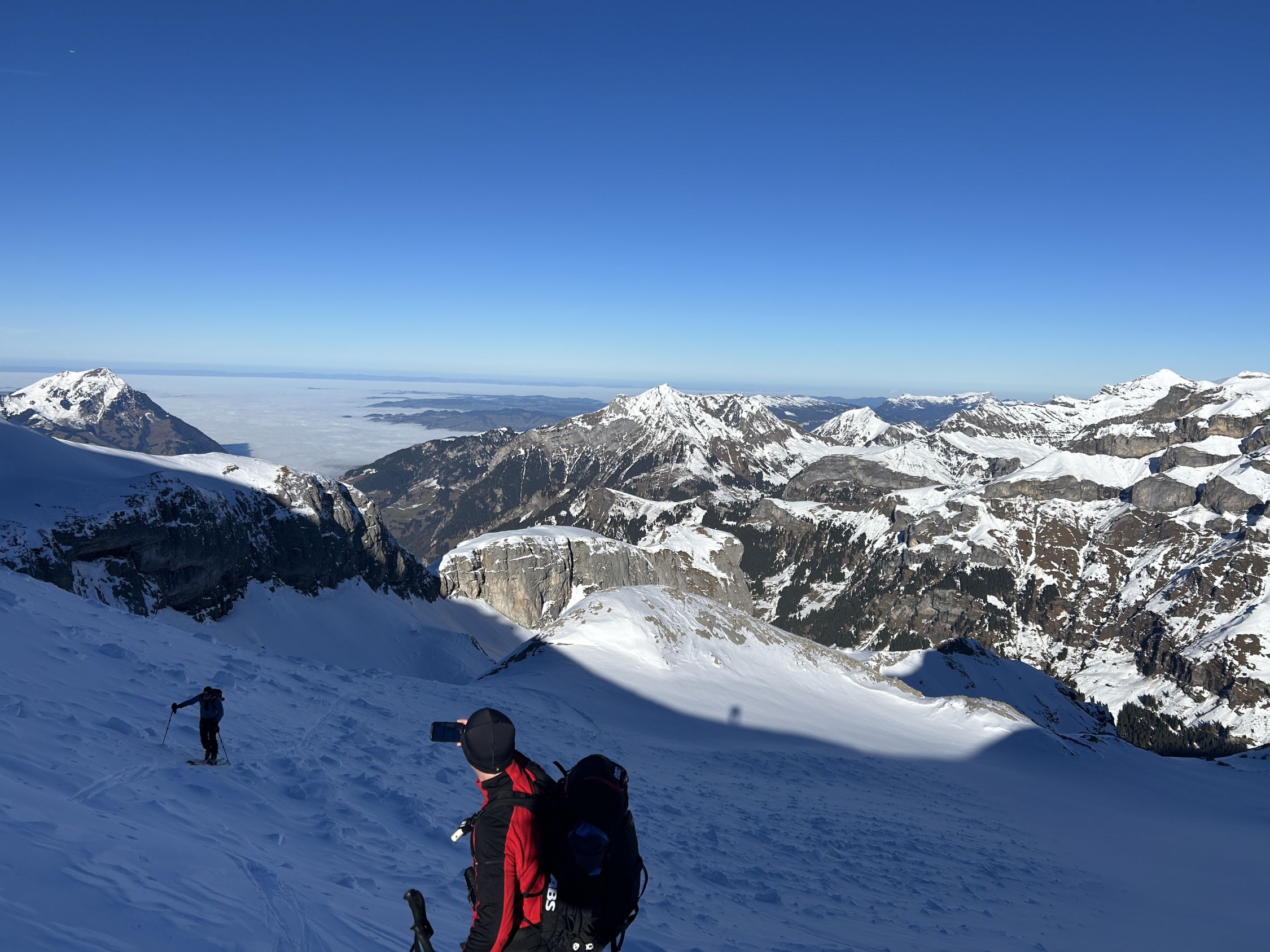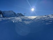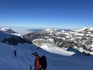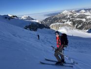 Abfahrt über östliche Variante mit Durchschlupf am Bäretritt .Dort wenig Schnee aber machbar .