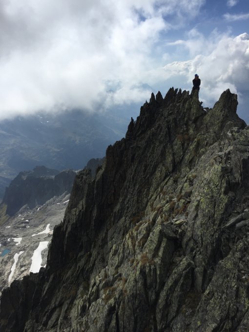 Die Route wurde sanft saniert. Unserer Meinung nach sehr gut. Die Sanierung beschränkte sich überwiegend darauf einen Bohrhaken an einigen wenigen Ständen zu setzen. Im Routenverlauf gibt es nur vereinzelt Bohrhaken an Plattenstellen. Alles andere muss weiterhin selbst abgesichert werden und macht auch die Routenfindung (und das obwohl es ein Grat ist ;)) weiterhin anspruchsvoll. Ein starker Nachsteiger ist zwingend notwendig, da viele Gratstücke und Traversen kaum ausreichend gesichert werden können.