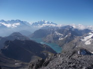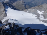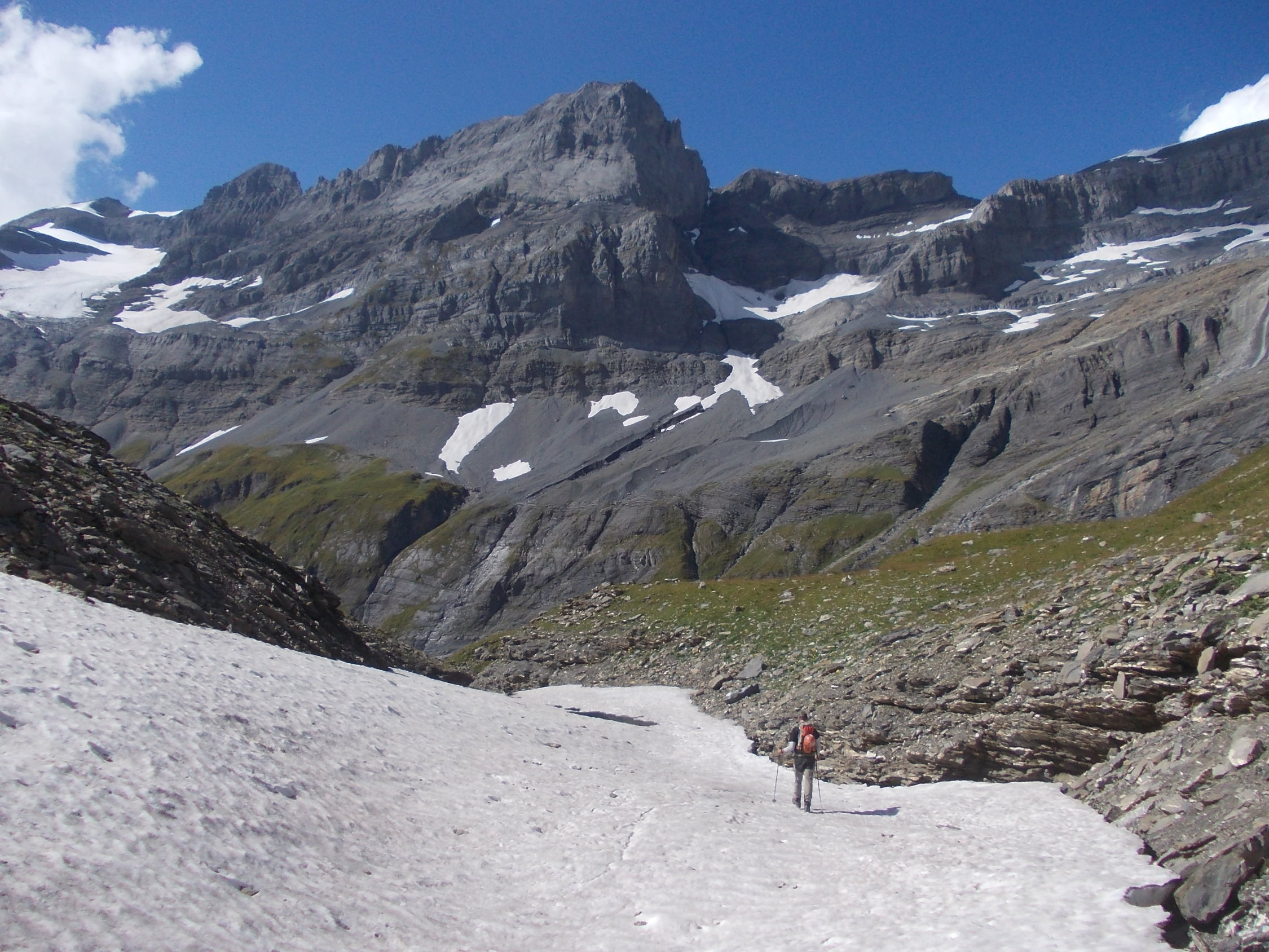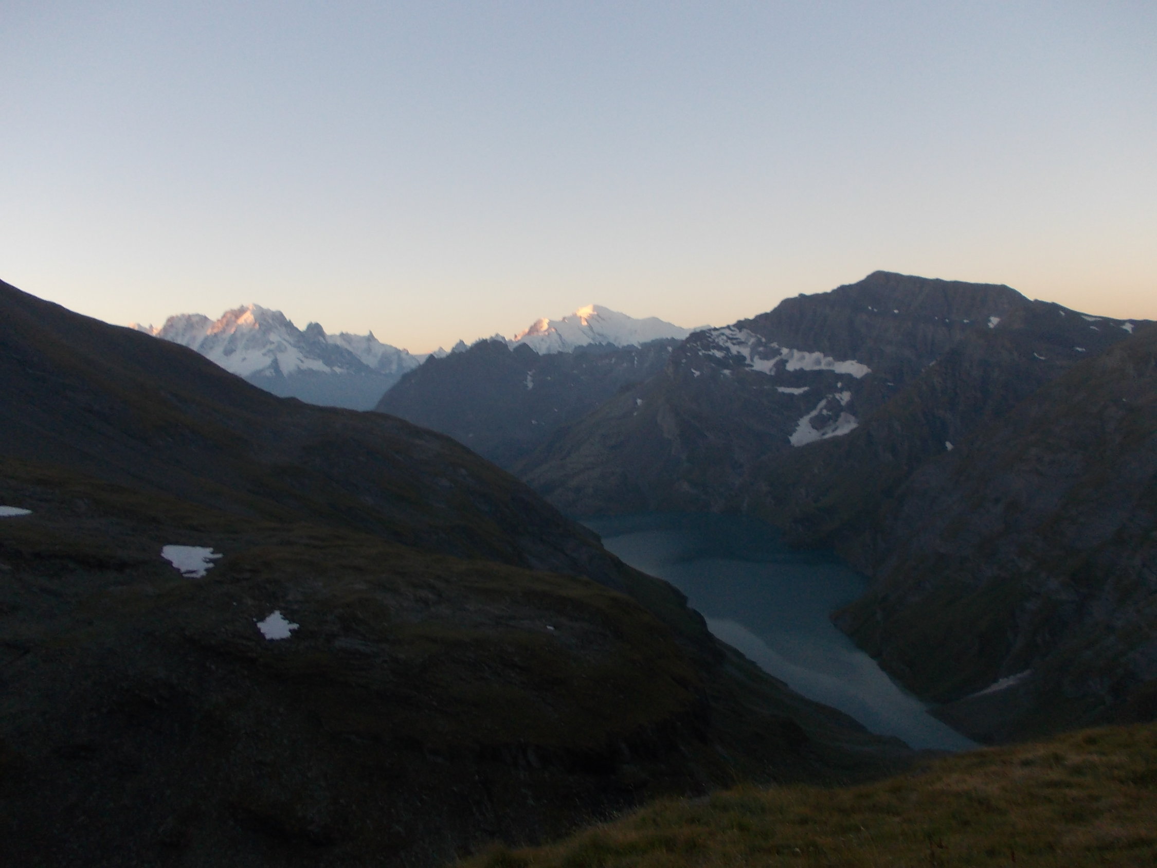 Vor 6 Jahren sind wir den Berg schon einmal von der Cabane du Susanfe her angegangen. Nach einem glückerlicherweise glimpflich verlaufenen Unfall mussten wir damals abbrechen. Da die Hütte fürs Wochenende bereits ausgebucht war, entschieden wir uns kurzerhand für die obige Aufstiegsvariante, welche auch als Normalroute gilt.