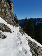 Sowohl der Aufstieg Kobel - Äscher, wie auch die Route unter den Füessler-Felsen sind im Winter nur bei sehr wenig Schnee zu empfehlen, da unter den Felsrinnen eine erhöhte Lawinen- und Steinschlaggefahr herrscht!