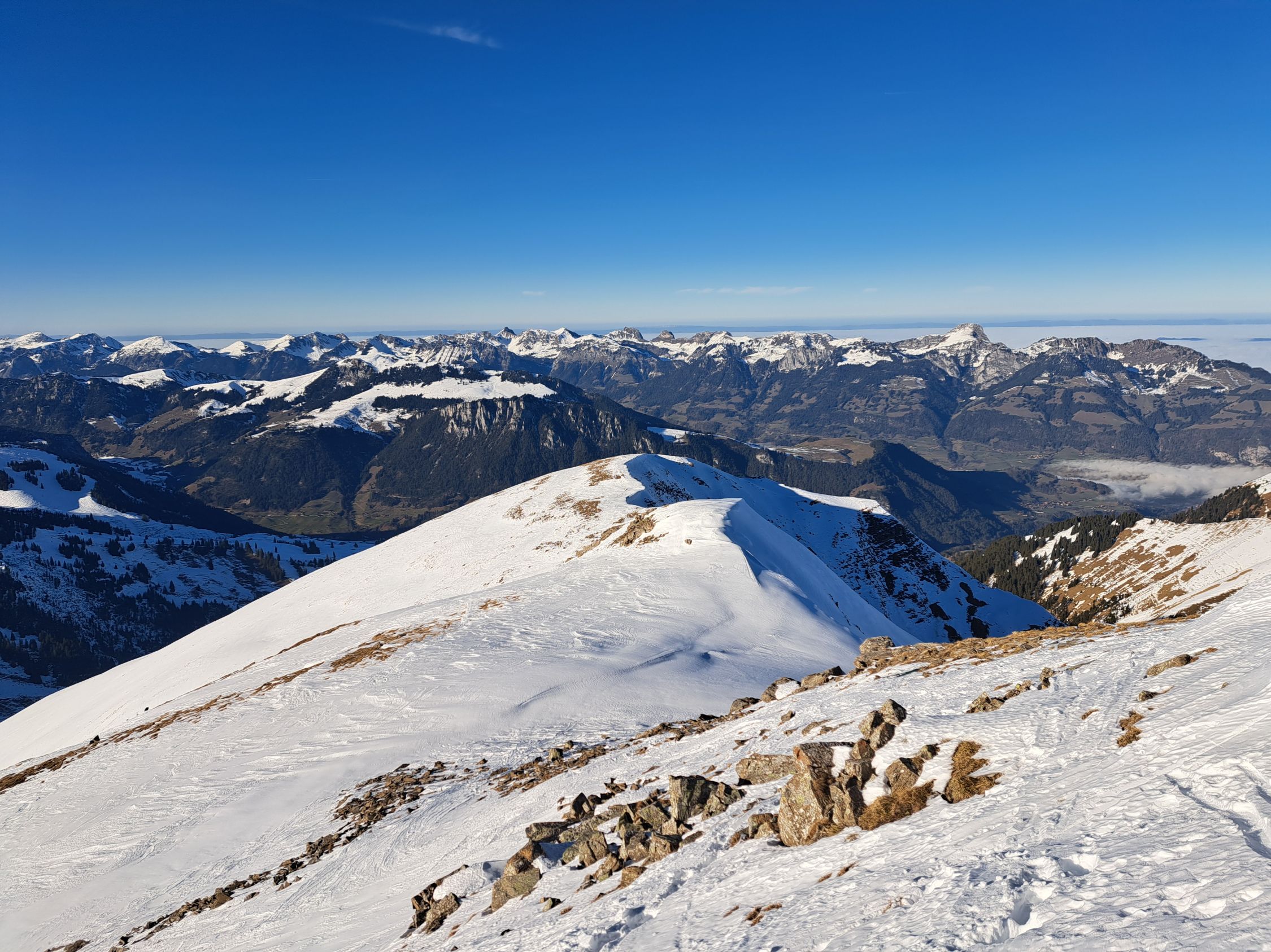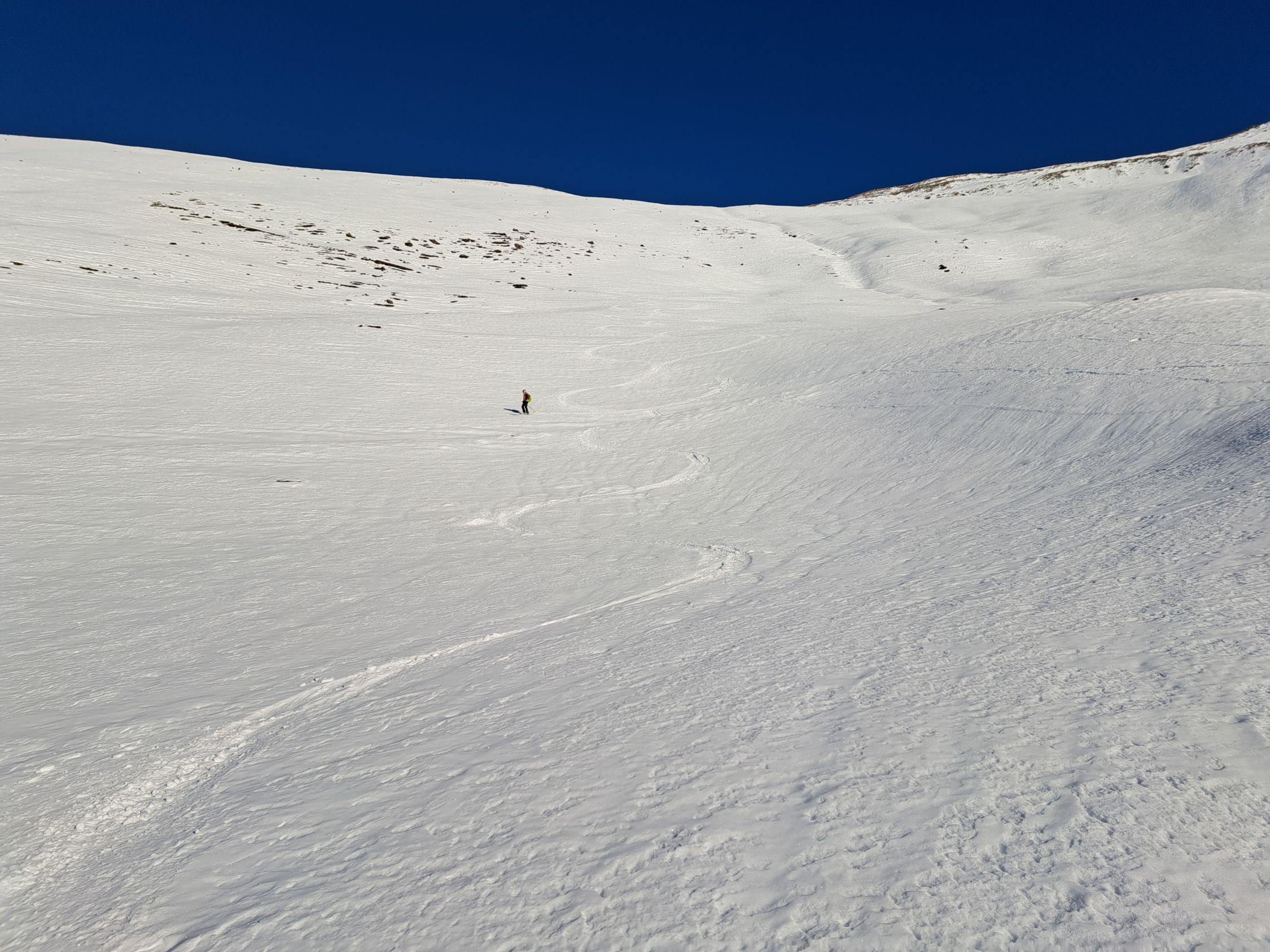 Da der ganze Gipfelhang westseitig viel Sonne und je nach einstrahlung oben Sulz und unten Hart.