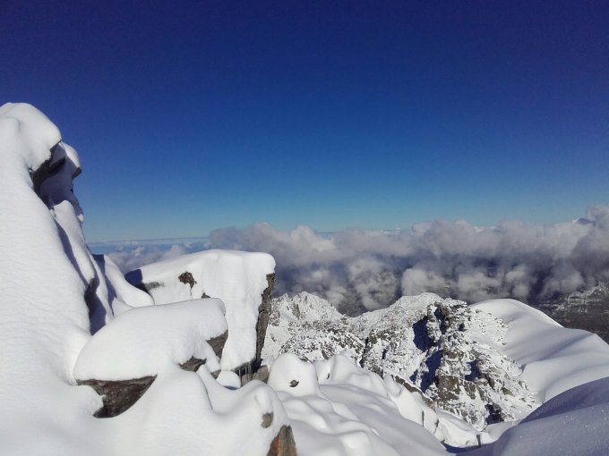 Neuschnee ab Parkplatz Umpol (ca. 2 cm). Hüttenweg mit zunehmend Schnee und teils etwas Eis darunter. Steigeisen könnten schon hier nützlich sein.
