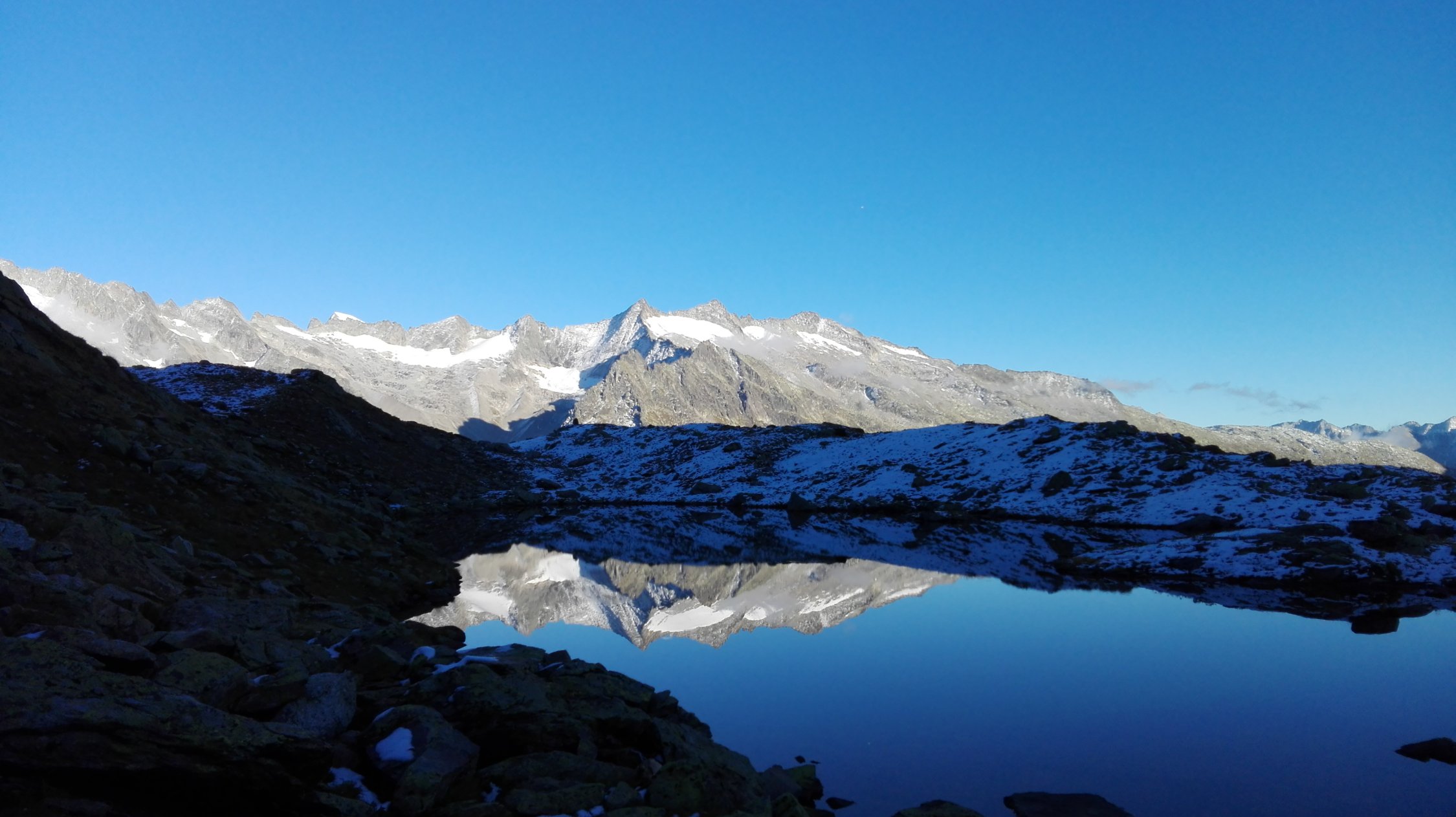 Nordseitig (resp. in den Sonnenabgewannten Expositionen) dürfte der Neuschnee (ca. 10 cm) liegenbleiben und aufgrund der Temeraturen kaum transformieren, also ungebunden/pulvrig bleiben. Sonnenexponierte Grate und Felsen sind bis gestern Abend ausgetrocknet (wenig Schmelzwasser, der Schnee verdampfte in der Sonne mehrheitlich), die Plattenrouten an der Grimsel können also problemlos geklettert werden in den nächsten Tagen.