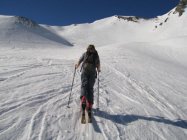 Die gesamte Waldstrasse ist geräumt worden. Eine Abfahrt mit Skis ist nicht mehr möglich. Oberhalb des Waldes trug der Schnee im Aufstieg noch teilweise. In der Abfahrt (11.00) oft leider nicht mehr.