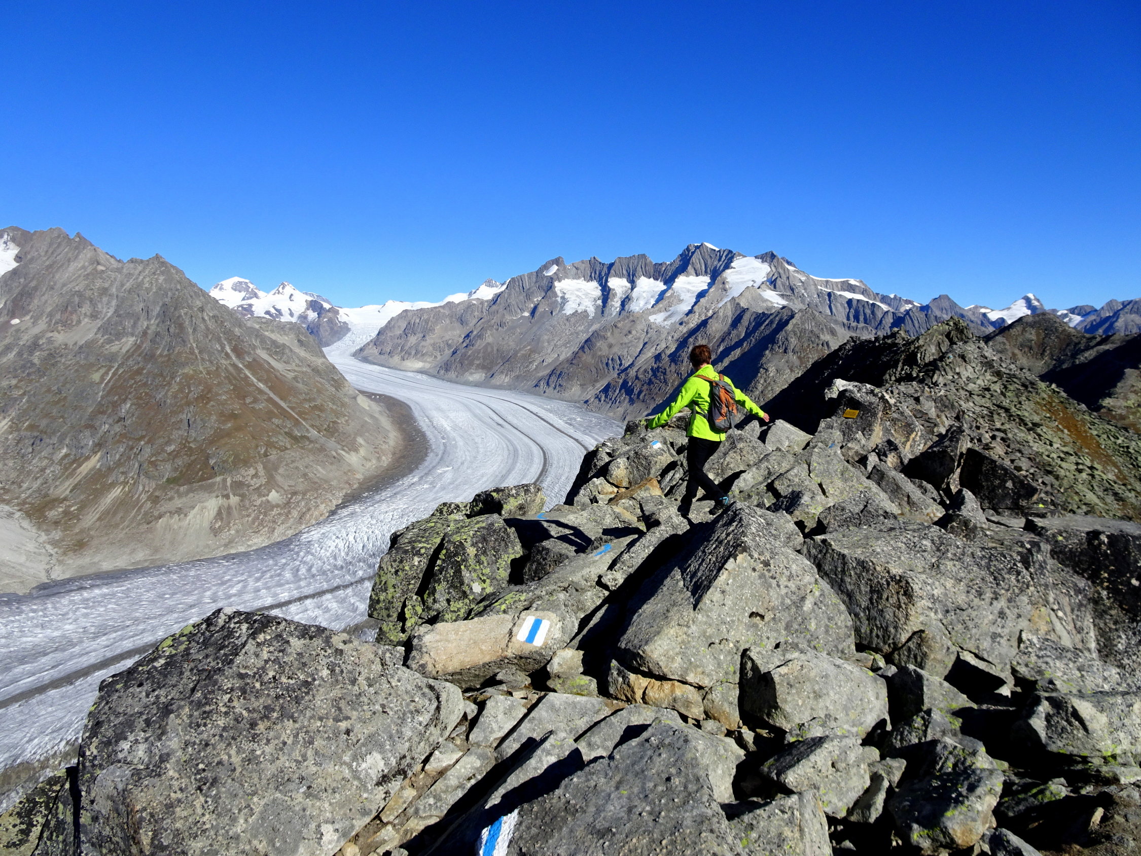 Ich wiederhole mich: Der Bettmergrat ist für mich eine der schönsten Gratwanderungen der Walliser Alpen. Die Anforderungen sind leicht bis mittel und das Panorama ist wunderschön.