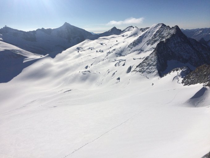 Gletscher gut zu gehen (auch der Uebergang Fels/Gletscher und der erste Aufschwung).