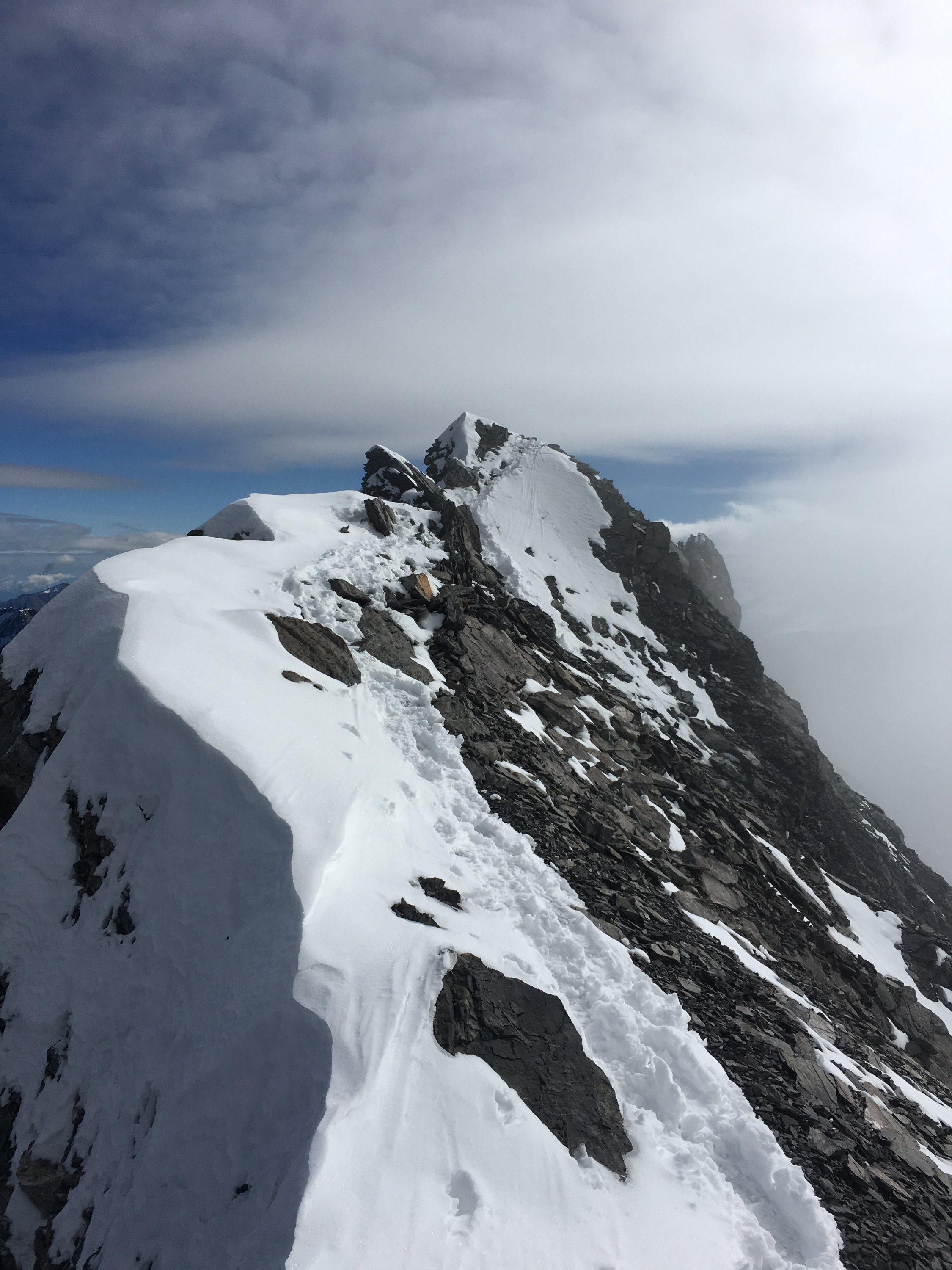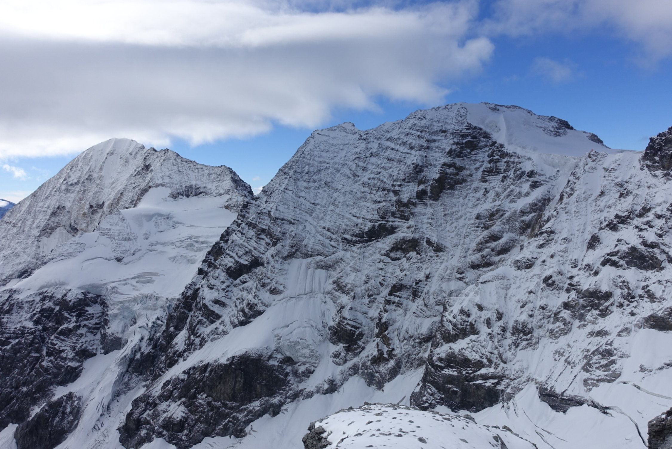 Allgemein recht angenehm zu gehen, verkrusteter Schnee hält die brüchigen Steine zusammen. Bis oben nirgends mehr als 20cm Neuschnee.