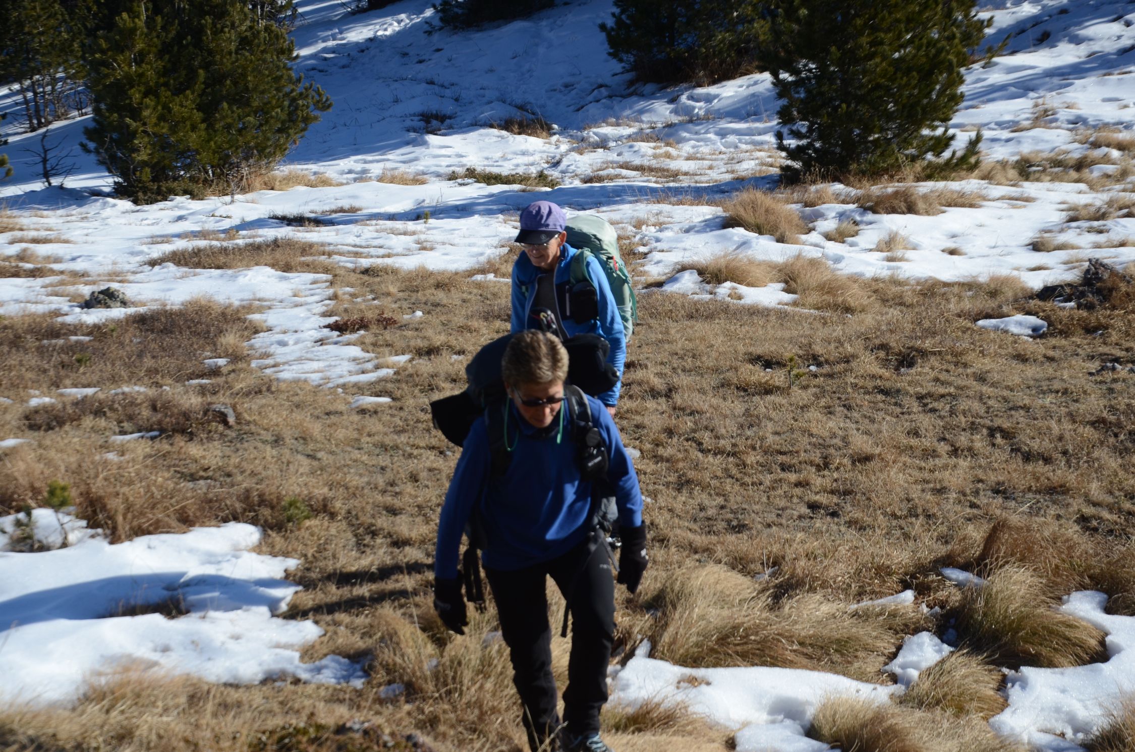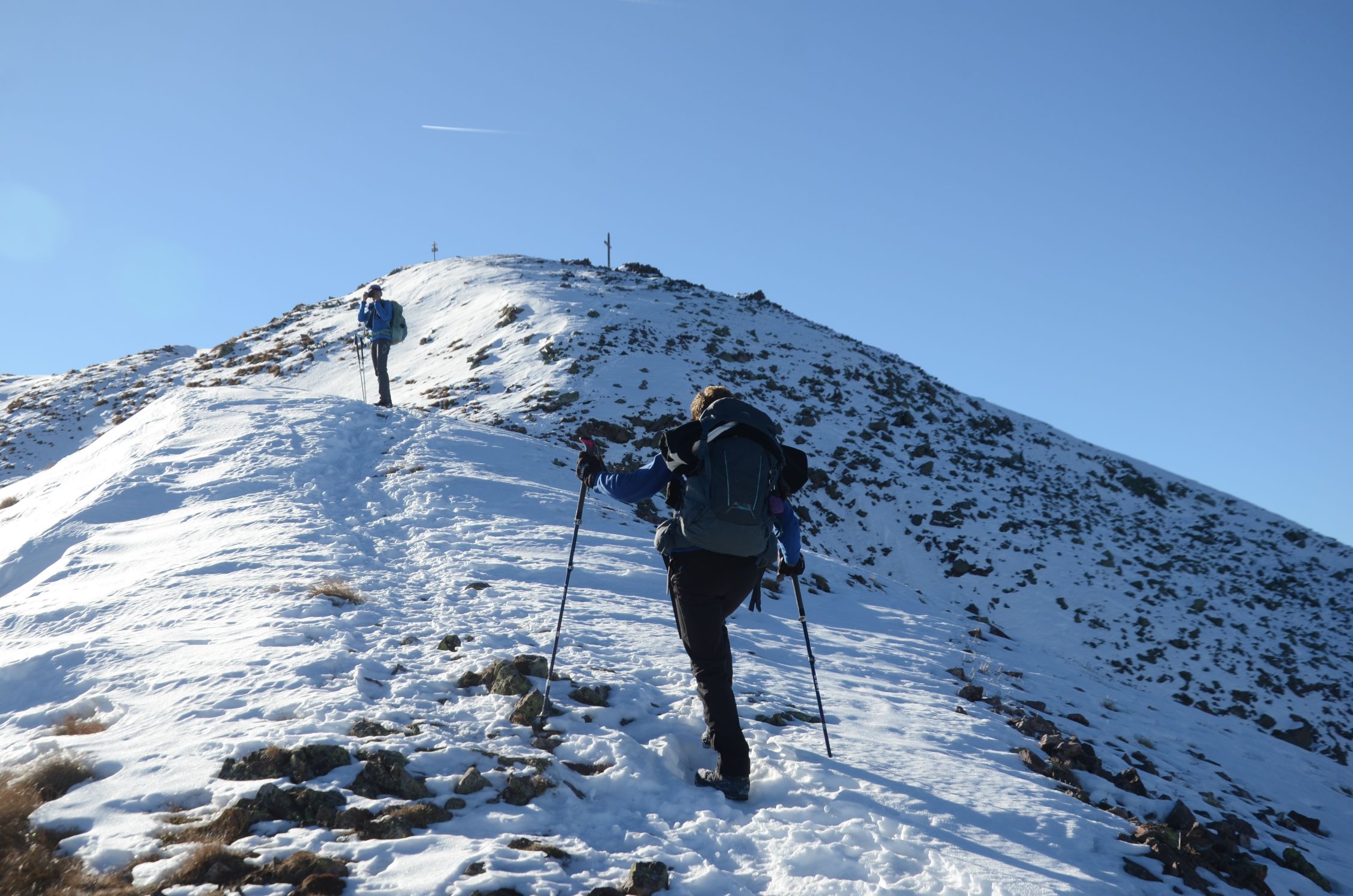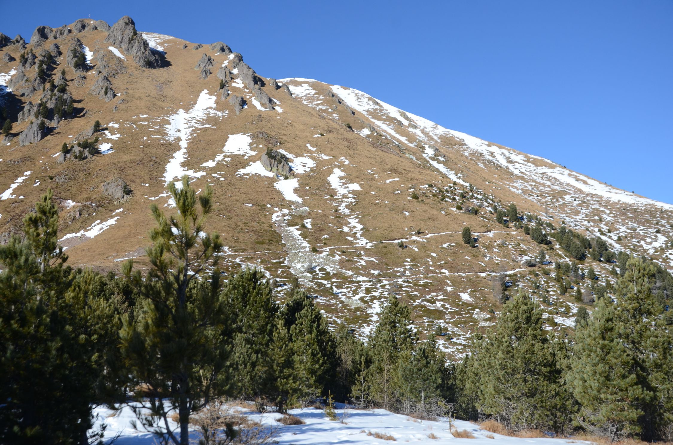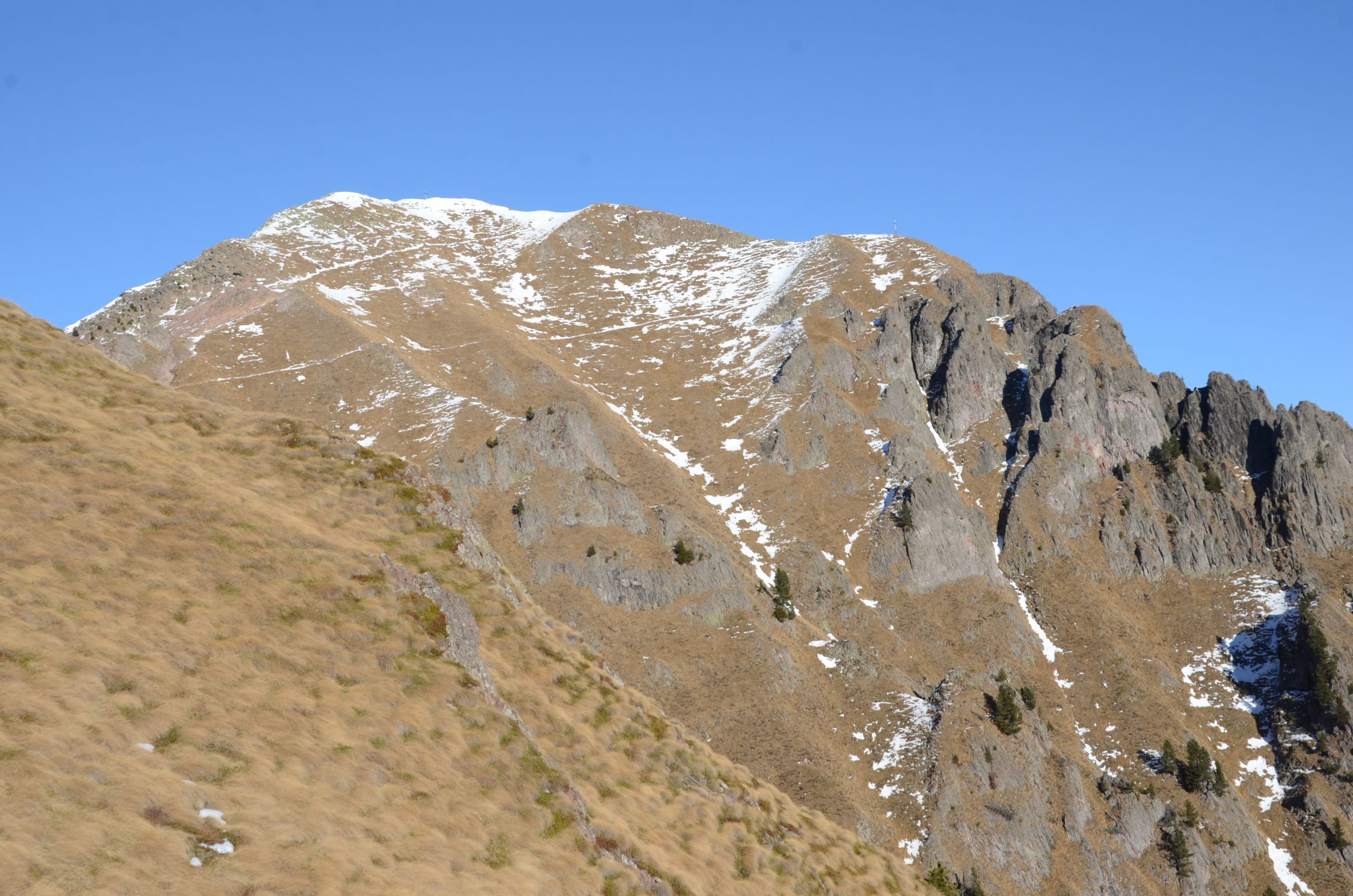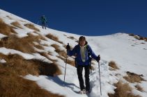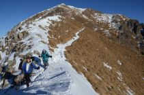 Die Südseite des Schwarzhorn präsentiert sich fast Schneefrei. Es trügt. Leider sind am Steig 10 bis 30 cm Schnee und es ist mühsam dort aufzusteigen.