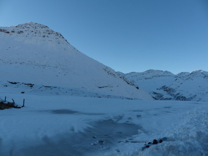 Durchgehende Schneedecke ab Passhöhe. Es hat mehr geschneit als erwartet. Gestern sei aber bereits viel geschmolzen. Die ganze Tour harte tragende Oberfläche. Auf der Militärstrasse 1 Lawine - ca. mitte - bereits unten. Unterhalb Gletscher problemloser Aufstieg. Nahtlos in Gletscher ebenfalls. Die Spalten sind gut sichtbar und schon recht überschneit. Unterhalb Skidepot und Gletscherschrund grosse Lawine bereits gestern oder vorgestern niedergegangen. Genau dort wo jeweils das Skidepot ist. Habe dann die Tour abgebrochen. Abfahrt kein Powder Genuss...tragend und doch nicht...habe mich dann praktisch der Aufstiegsspur entlang herunter "gemogelt" - teilweise halt eben wie ein Anfänger. Erstaunlicherweise kein Steinkontakt.