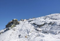 Einsamkeit hat um die Jahreszeit natürlich auch immer seinen Preis, zum Beispiel jungfräulich unverspurte Gletscher. Hier wären Schneeschuhe sicher von Vorteil gewesen, die hatten neben der Biwakausrüstung und vernünftiger Verpflegung aber keinen Platz mehr, daher etwas gewühlt.