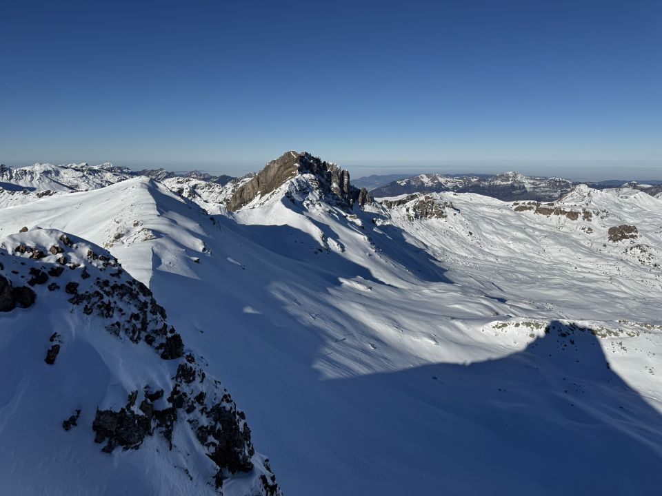 Alles top - bis auf den Schnee. Wunderbare Aussicht! Der Aufstieg zum Gipfel in der Rinne ist ohne Steigeisen etwas kriminell.