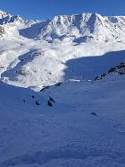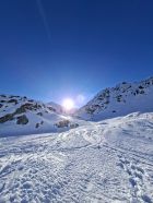 Auf Suche nach Sulz und super Puder gefunden(keine Ahnung warum nach so langer Zeit und mit Sonne..).Erst 3-4 Spuren liesen hoffen-aber von Direktvariante Hospitz kamen Heute noch 20 Türeler runter.Da sie aber nicht die Verhälnisse kanten alle im schattigen etws gedeckelten Teil den Spuren nach-Merciiii.Desshalb die Direktvariante ab Gipfel links gewählt und top belohnt worden...