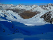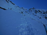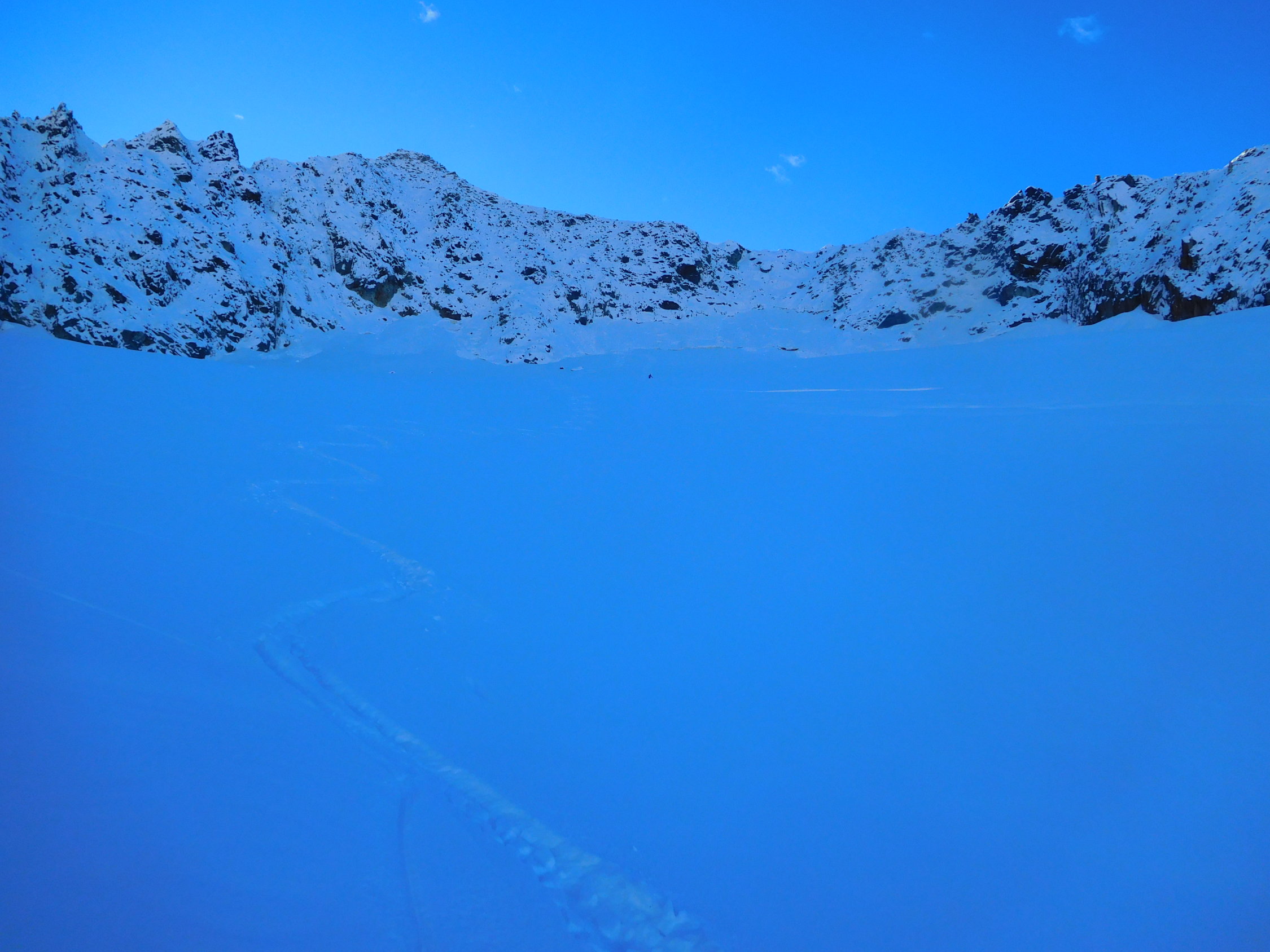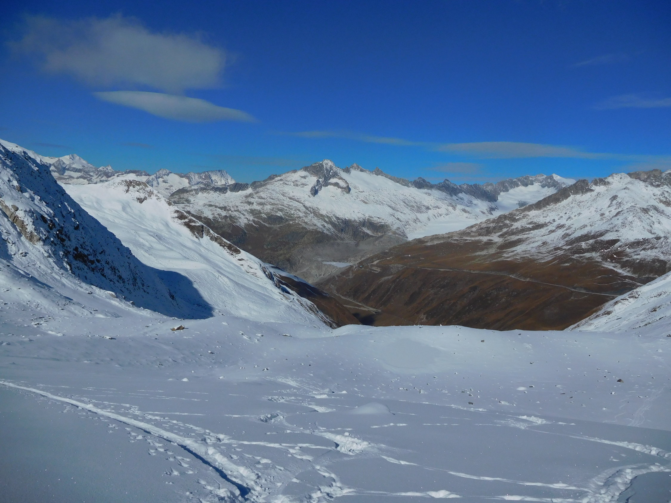 Start der Tour am 8.15 Uhr bei kalten - 5 Grad beim Furkapass, entlag der Militärstrasse lag sehr wenig Schnee, aber hart gefrohren, heute eine durchgehende Schneedecke bis zum Gipfel, der Schnee der letzten Woche hatte sich schon recht gut gesetzt, dadurch auch nach der Strasse keine Steinkontakte, auf dem Muttgletscher noch viel Pulverschnee angetroffen, die Gletscherabfahrt wo powder Verhätnisse waren haben wir noch ein zweites mal gemacht, dann gings links vorbei am Bergschrund zum Skidebot, die ersten Passagen zum Grat hinauf waren heute recht schwierig, keine gut Schneeauflage auf den Steinen, aber es ging dann doch noch, der Aufstieg zum Gipfel war wie immer die Uebliche wühlerei.