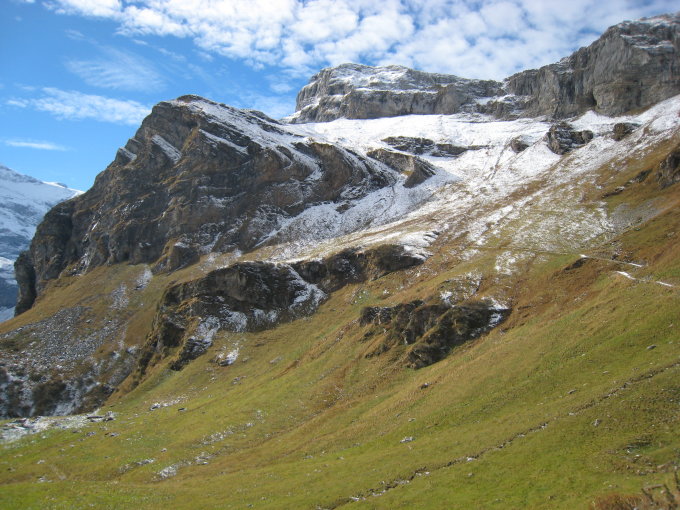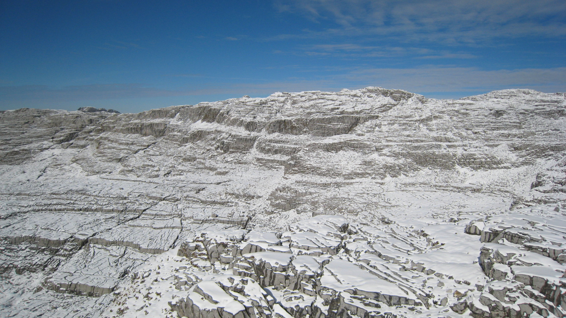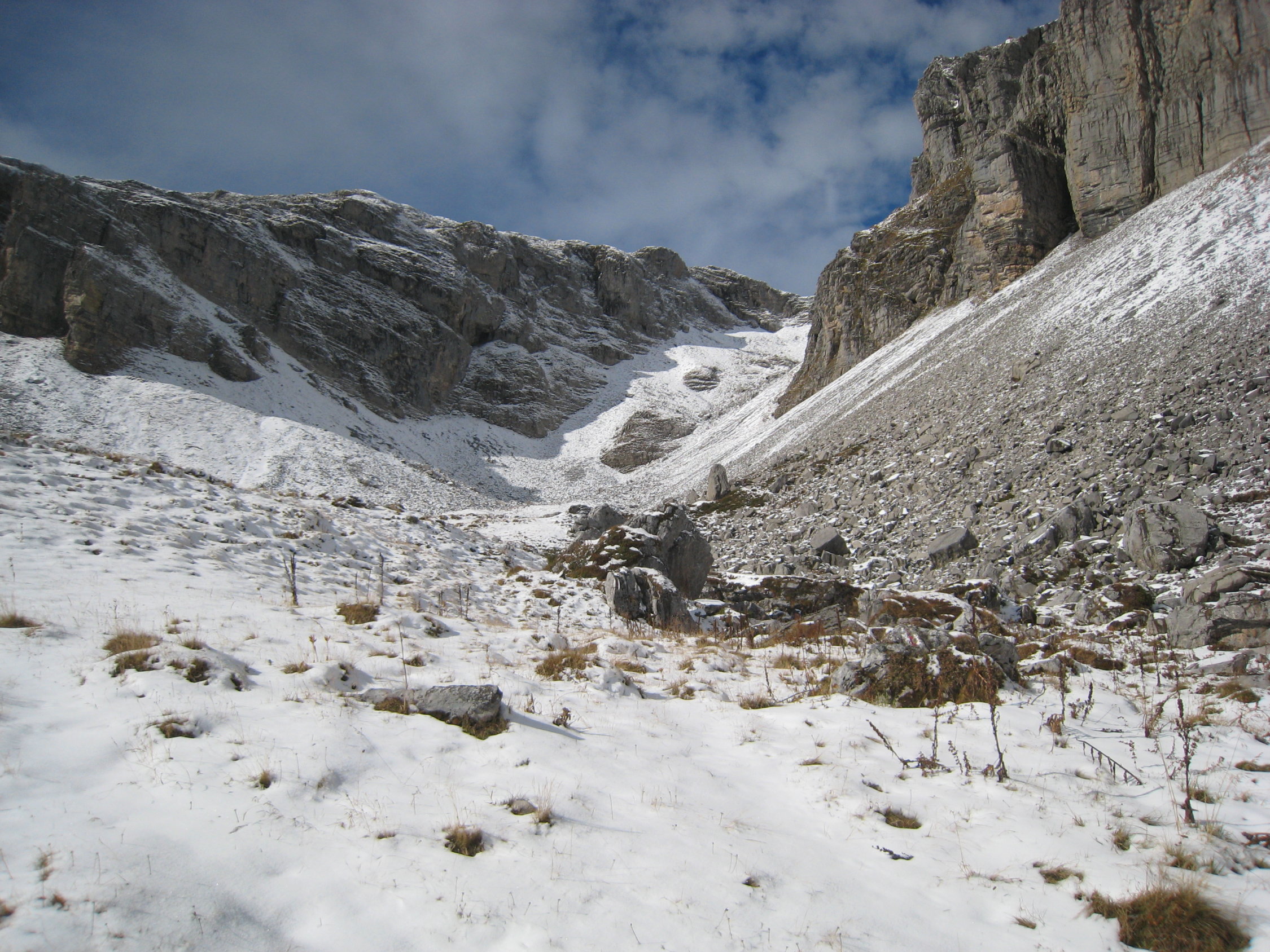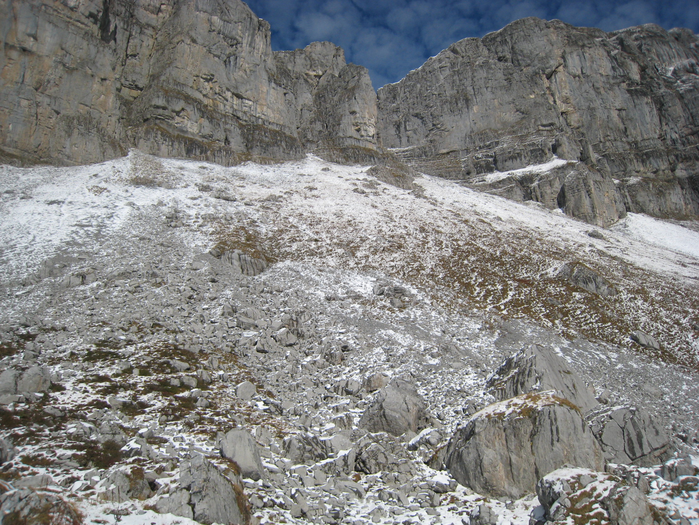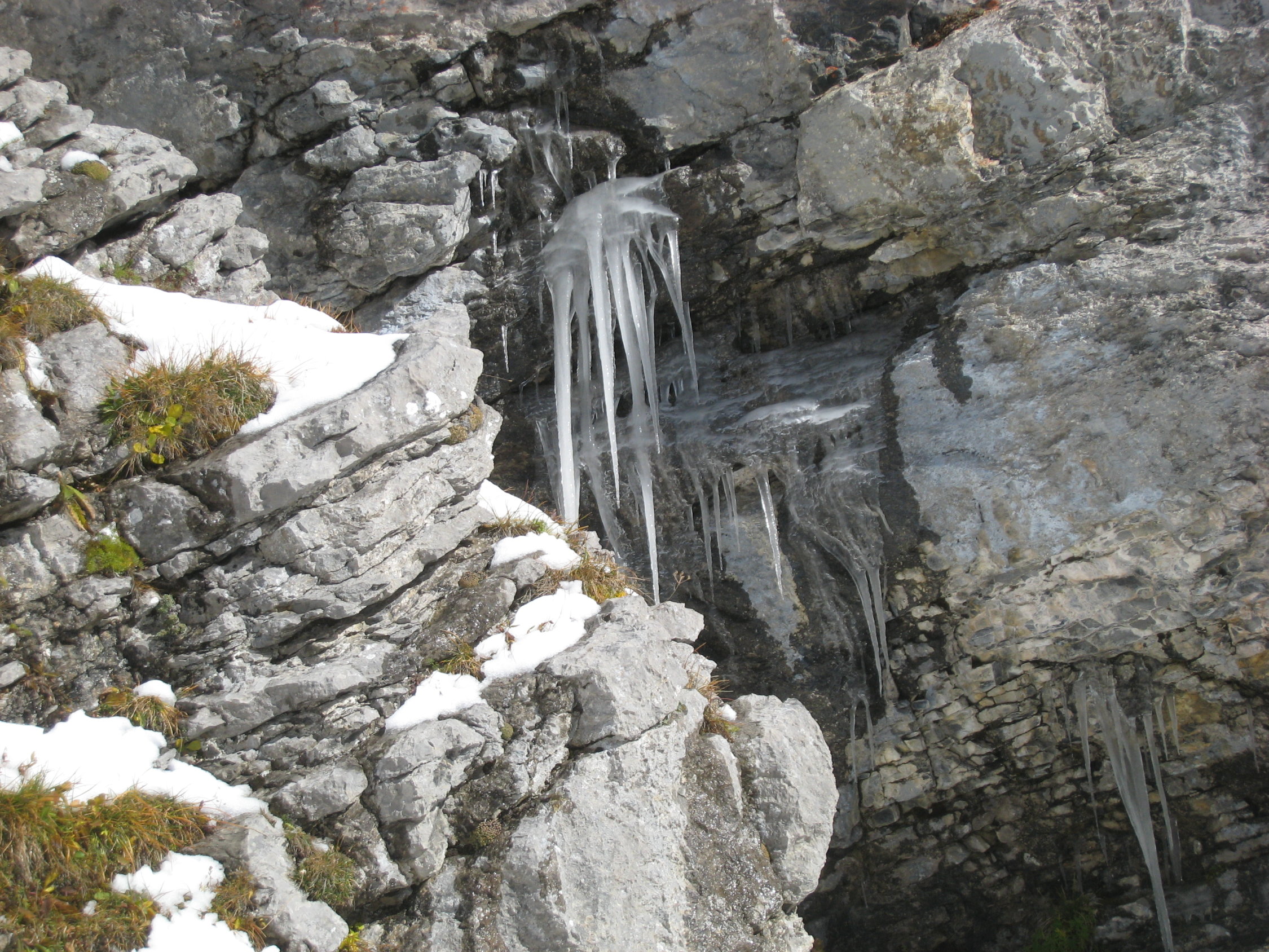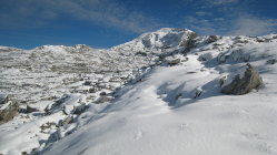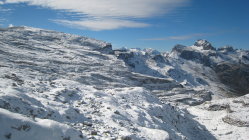 Außer zwei Rudeln Gämsen war heute niemand unterwegs. Letzteres hat mir auf dem Plateau sogar den Weg gewiesen, sehr praktisch. Gamaschen wären kein Luxus gewesen. Es wintert sehr in dem Gebiet. Aber nochmals warme Temperaturen gesucht und bekommen.