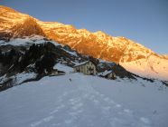 Schon allein wegen des bis ca. 1700 m mehr oder weniger aperen Hüttenzustiegs plus der oben genannten Schneeverhältnisse mit Skiern derzeit nicht zu empfehlen.