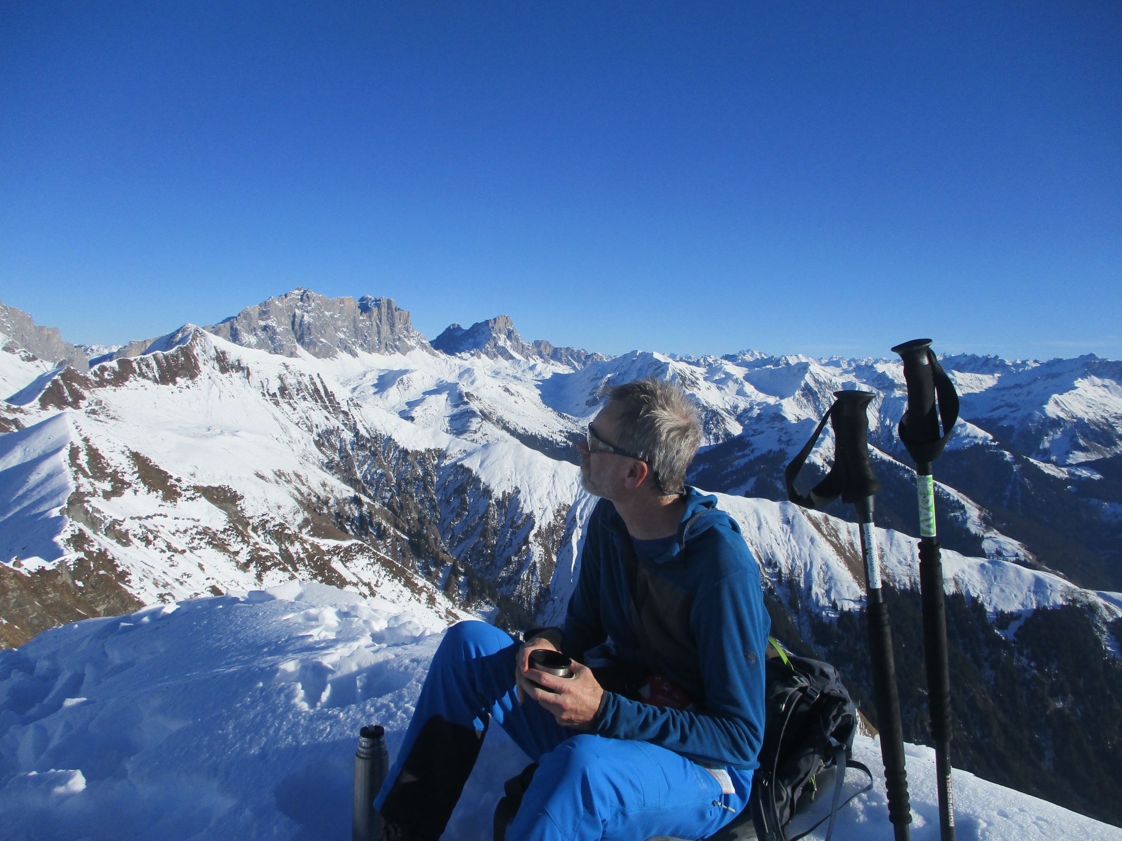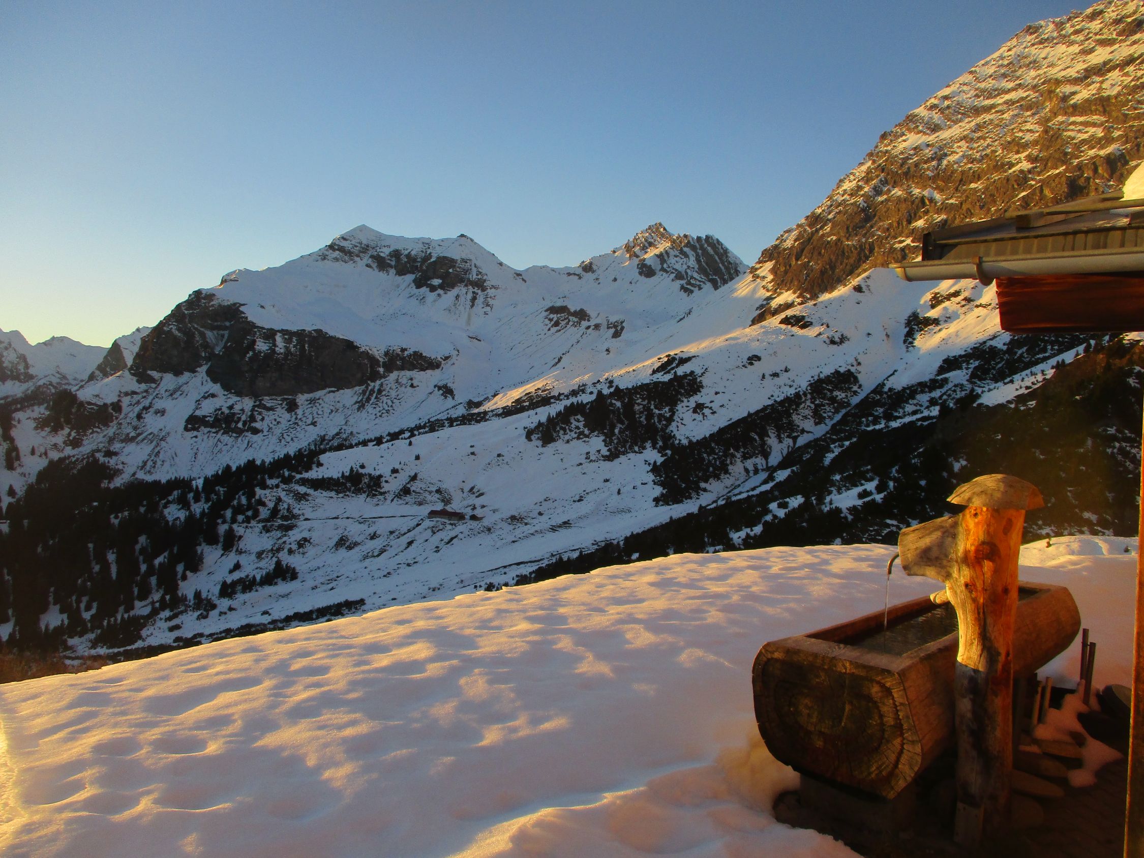 Sensationelles Bergwetter mit einem tagsüber stahlblauen Himmel und nachts sternenklar. Natürlich zu warm für die Jahreszeit, frühjahrshaft in der Sonne, von der wir auf dieser nordexponierten Tour aber nur bedingt profitierten. Die Bergwelt um die Schesaplanahütte gehörte an diesem Wochenende uns, wir trafen dort, bis auf ein paar Jäger im Hüttenzustieg, keine weitere Menschenseele.