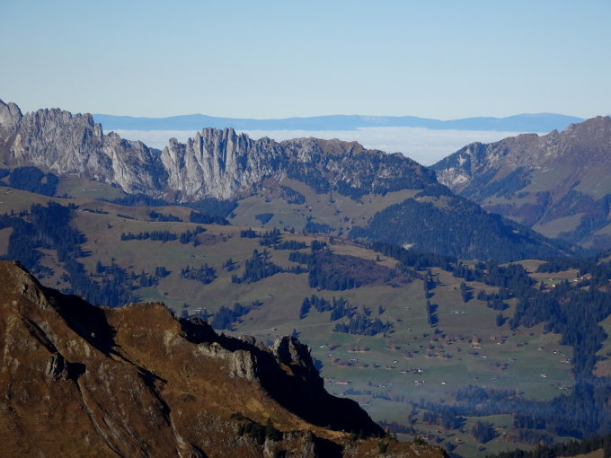 Ich hatte mich schon abgefunden, dass das Seehore für mich eine alpine Bildungslücke bleiben würde. Aus verschiedenen Gründen kam ich nie dazu endlich das Seehorn zu besteigen. Heute haben mir gute Freunde ermöglicht, ebendiese Lücke zu schliessen und zwar via Fromattgrat. Vielen Dank. Ich habe diese Tour sehr genossen: Prachtswetter, trockene Verhältnisse, schöne Stellen im guten Fels, exponierte Stellen wo Trittsicherheit 100% stimmen musste, nicht zuviel Höhenmeter, gute Begleitung, mehr habe ich mir nicht gewünscht. Habe ich in meiner Aufzählung etwas vergessen? Ach ja, die Steinböcke. Sie waren vor der Bise in den Windschatten geflüchtet und wir entdeckten sie während dem Abstieg weit,weit weg und ich musste den Zoom meiner Kamera ausreizen mit nicht gerade berauschendem Resultat.