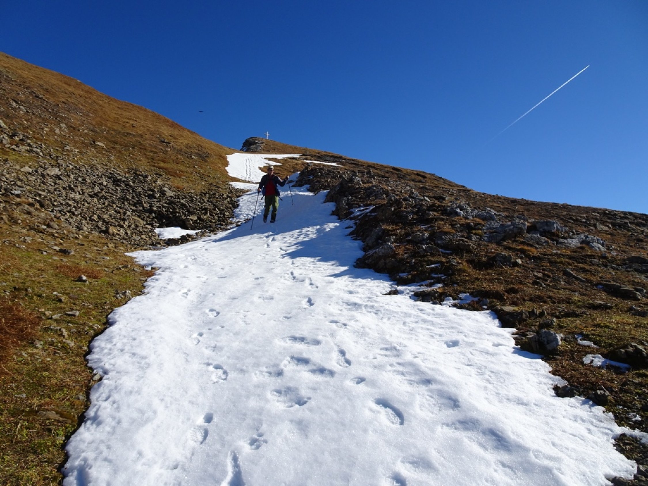Start um 8:30 von der Station Tannenbodenalp bei schönstem Wetter. Wege teils feucht, teils gefroren aber grösstenteils trocken, d. h. beste Verhältnisse! Wenig Schnee kurz vor dem Gipfelkreuz, der gut tragend war… Abstieg vom Calans-Türli erdig und feucht, deshalb etwas heikel.