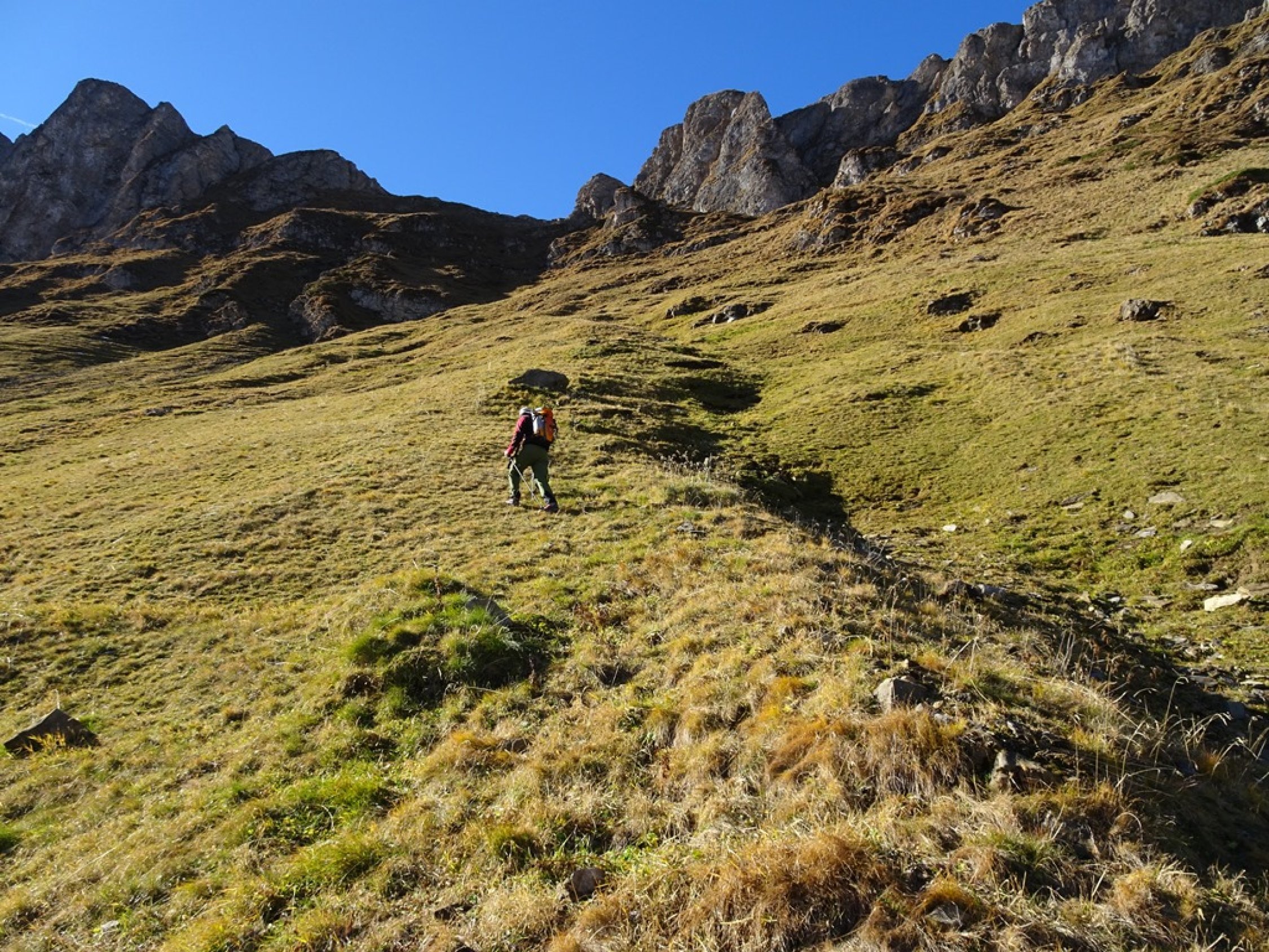 Aufstieg zum Magerrain hat eine gute Wegspur und ist teils mit Steinmännchen markiert.