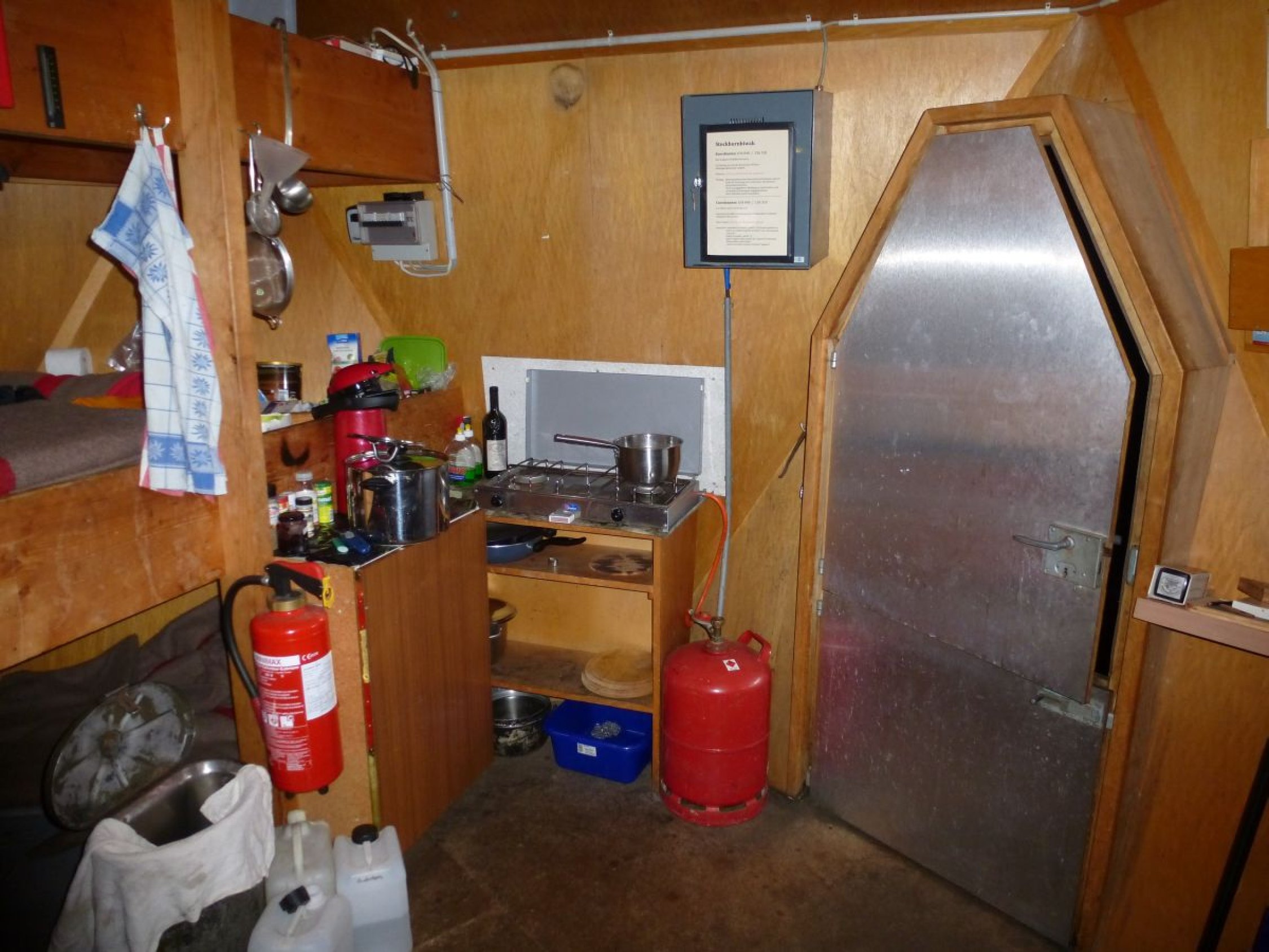 Bestens eingerichtes Stockhornbiwak! Gas, Kocher, Töpfe, Getränke und sogar diverse Lebensmittel können aus der Vorratskiste bezogen werden. Schlüssel für die Kiste kann im Hotel Bahnhof in Außerberg abgeholt werden. Wer bis zum Stolleneingang hochfahren will braucht eine Bewilligung! Ansonsten laut Kontrolleur 100 CHF Strafe!