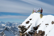Es war eine aussergewöhnliche Begehung: um auf die kommende Abstimmung "Ja zum Atomausstieg" aufmerksam zu machen, haben wir 2 Fässer und Banner für Fotos auf dem Gipfel mitgenommen.